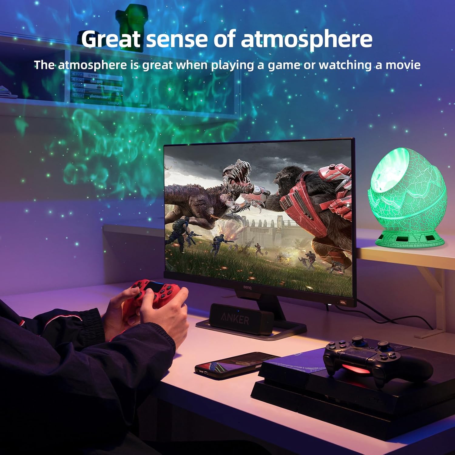 - 【Dinosaur Egg Night Light Projector】The combination of nebula and star lights can turn on alone or in combination(up to 14 colors), and the projection of nebula flow creates a relaxing atmosphere, 3 speed and brightness. The high-definition starry galaxy can be projected onto the wall and ceiling, You will feel like you are travelling in the galaxy.The atmosphere is great when playing a game or watching a movie.