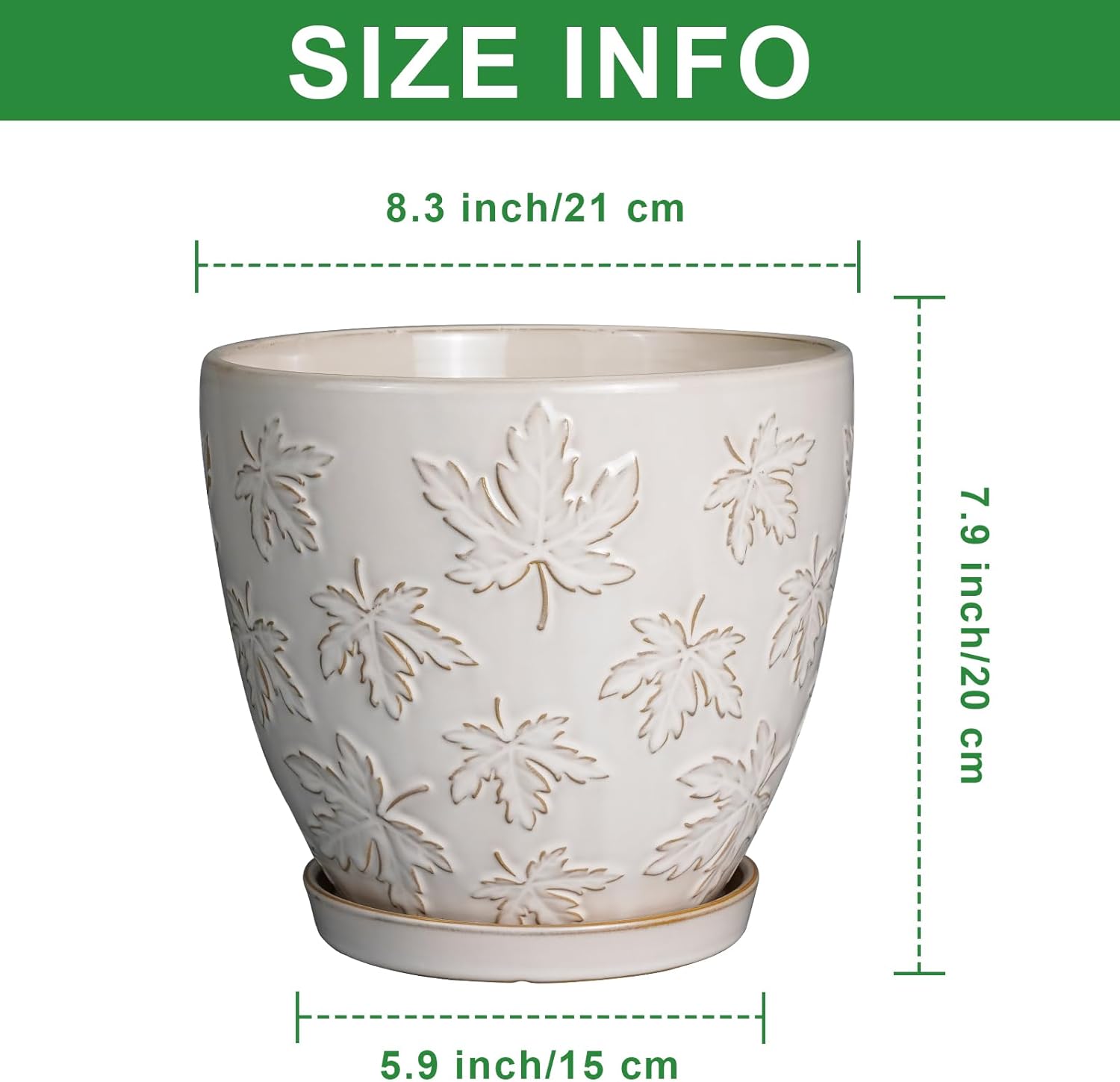 - Stylish Appearance: Our ceramic planter has a white main colour, a beautiful embossed maple leaves pattern on the surface, elegant appearance making it ideal for home decor, garden decor and office decor