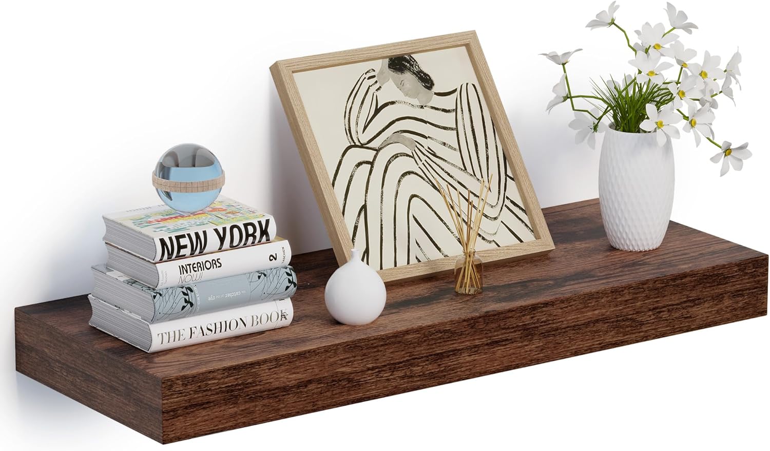 Heimlove 24 x 12 Inch Deep Floating Shelves Wall Mounted with Invisible Brackets,Storage Hanging Shelf for Wall Decor in Bathroom, Bedroom, Kitchen, Living Room, Office Set of 1 (Rustic Brown)