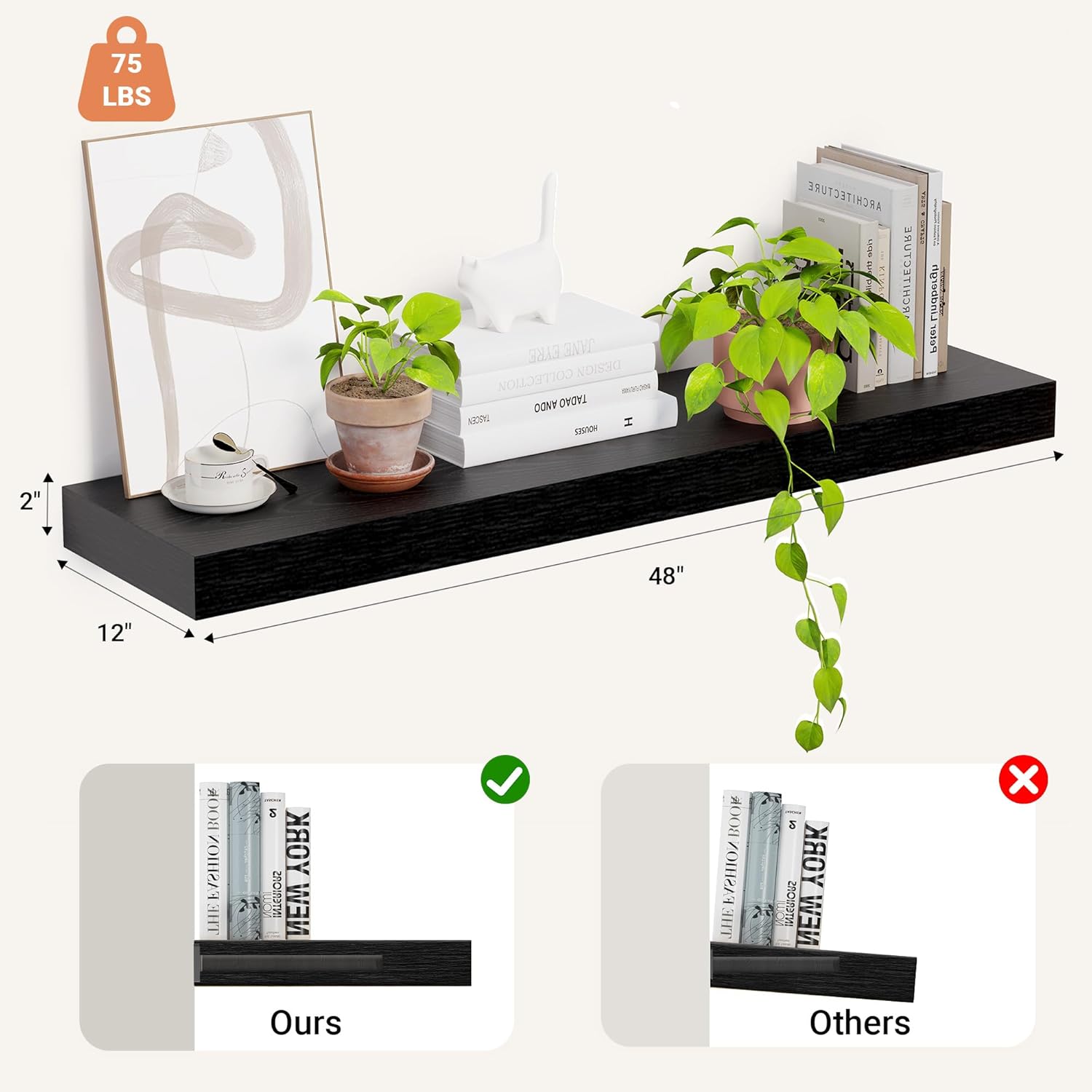 - Sturdy and Effortless Assembly- Includes all necessary hardware to make these floating shelves easy to assemble. We also provide you with detailed install instructions for you to install the shelves in a few minutes.