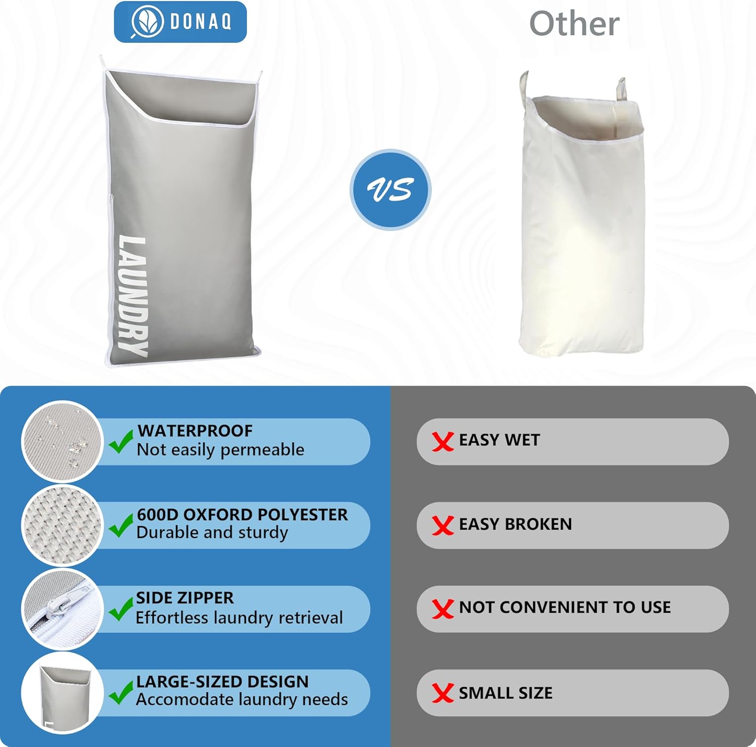 - 𝗕𝗨𝗜𝗟𝗧 𝗧𝗢 𝗟𝗔𝗦𝗧: Designed for durability, our hanging laundry hamper withstands heavy laundry loads. It provides reliable performance and long-lasting use for years to come, making it a dependable addition to your home.