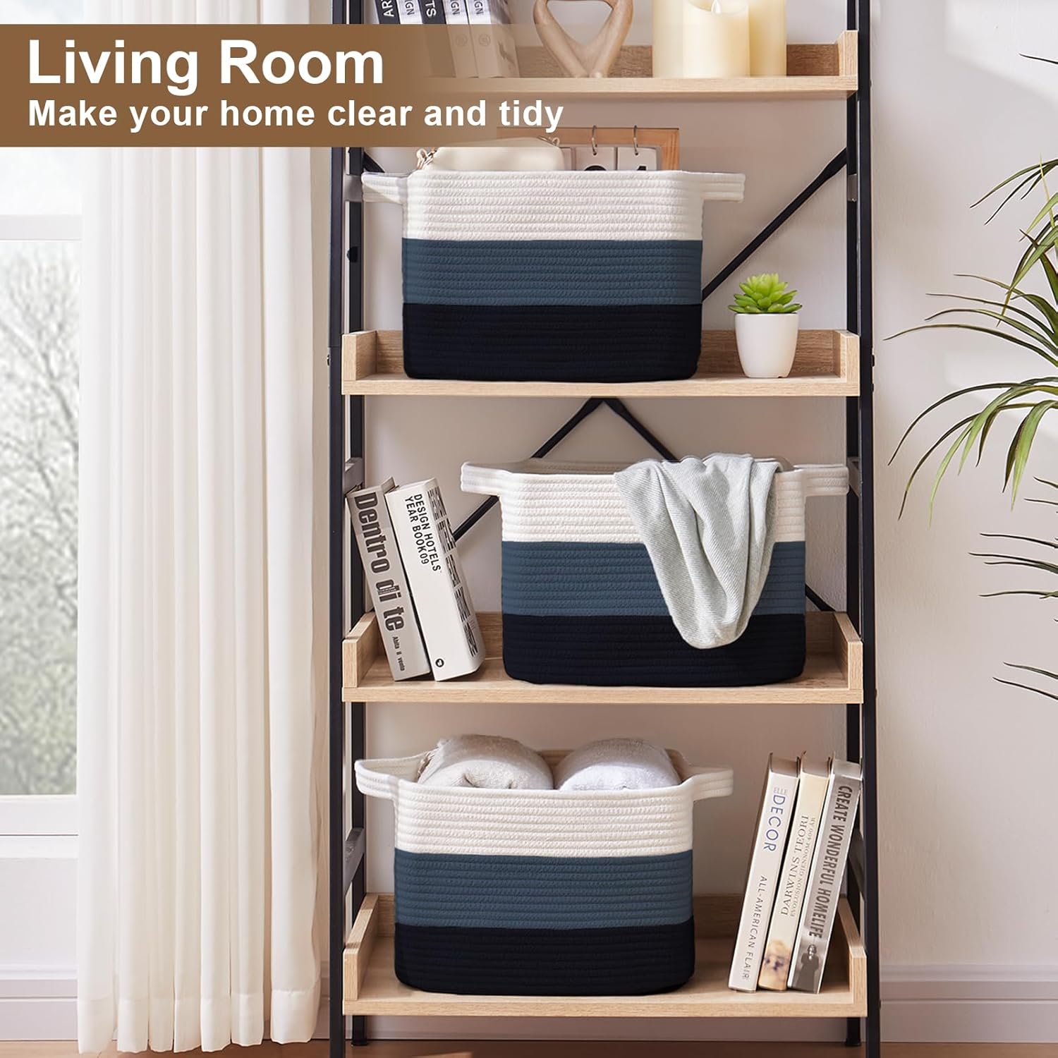 - Multifunctional Storage Basket: 13" x 9.85" x 8.7" shelf basket for organizing, which are designed to fit perfectly on living room, bedroom, bathroom, baby room, office to store household items (towels, toiletries, stuffed animals, books, baby diapers, etc.)