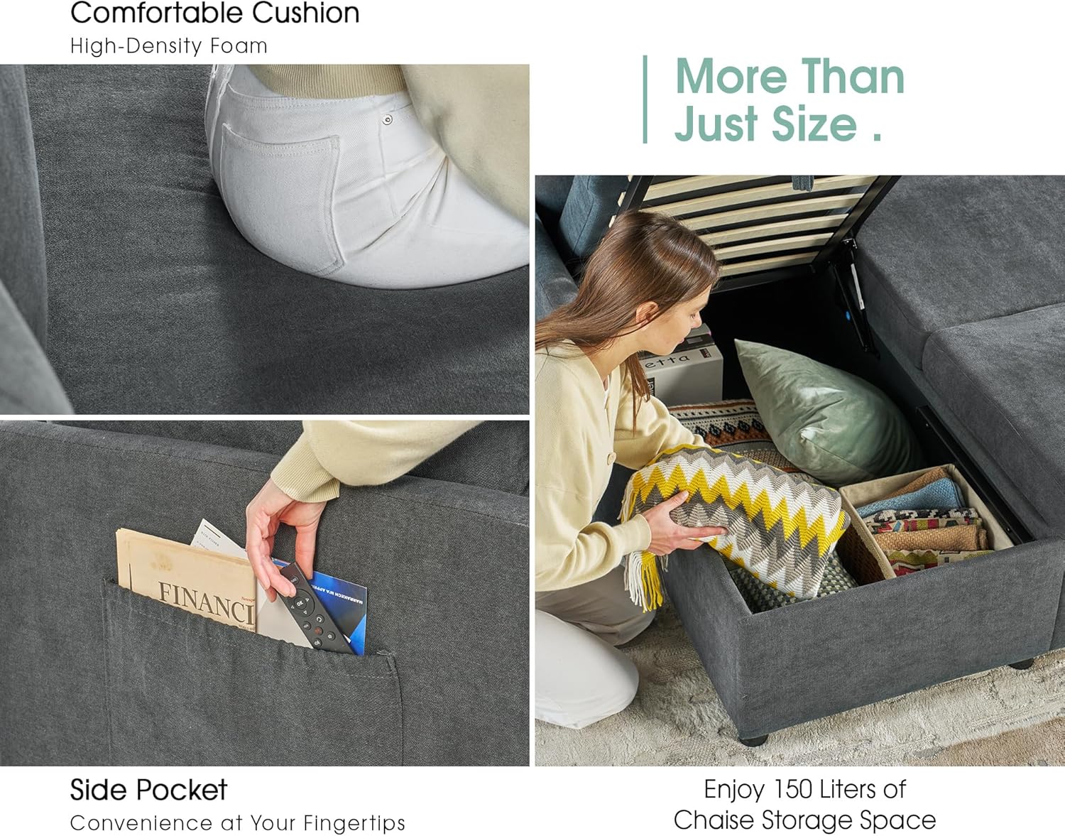 - Incomparably Wide: Sizeable Sectional Sleeeper Sofa boasting 3 seater & chaise lounge, arranging with an additional roomy corner seat, perfect for family gatherings or hosting guests.