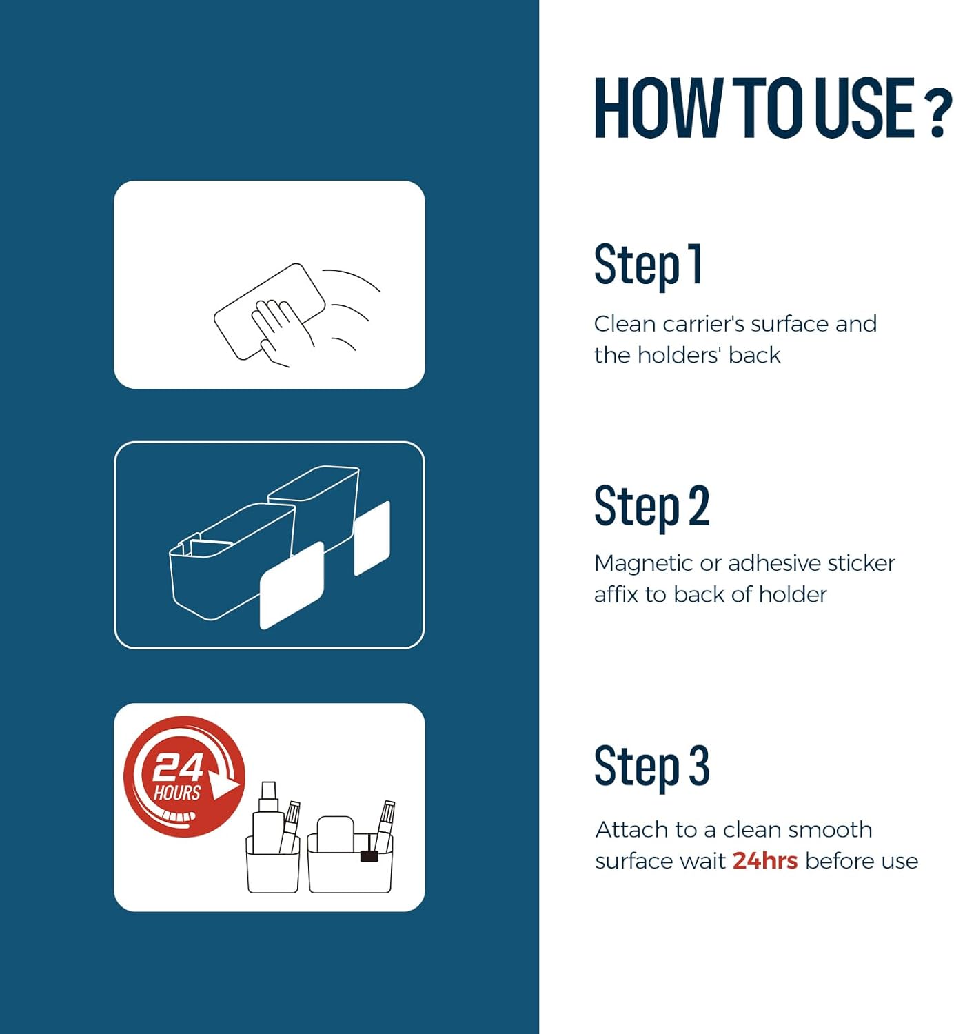 - Light Capacity: Includes a small marker holder (4.8 x 2.24 x 2.36 inches) and a mini marker holder (2.95 x 1.85 x 2.24 inches). The small holder can hold 1 whiteboard eraser, 1 whiteboard cleaner, and several dry-erase markers or other accessories. The mini holder can fit 1 eraser or 1 whiteboard cleaner and several markers. Offers flexible storage options based on your preference