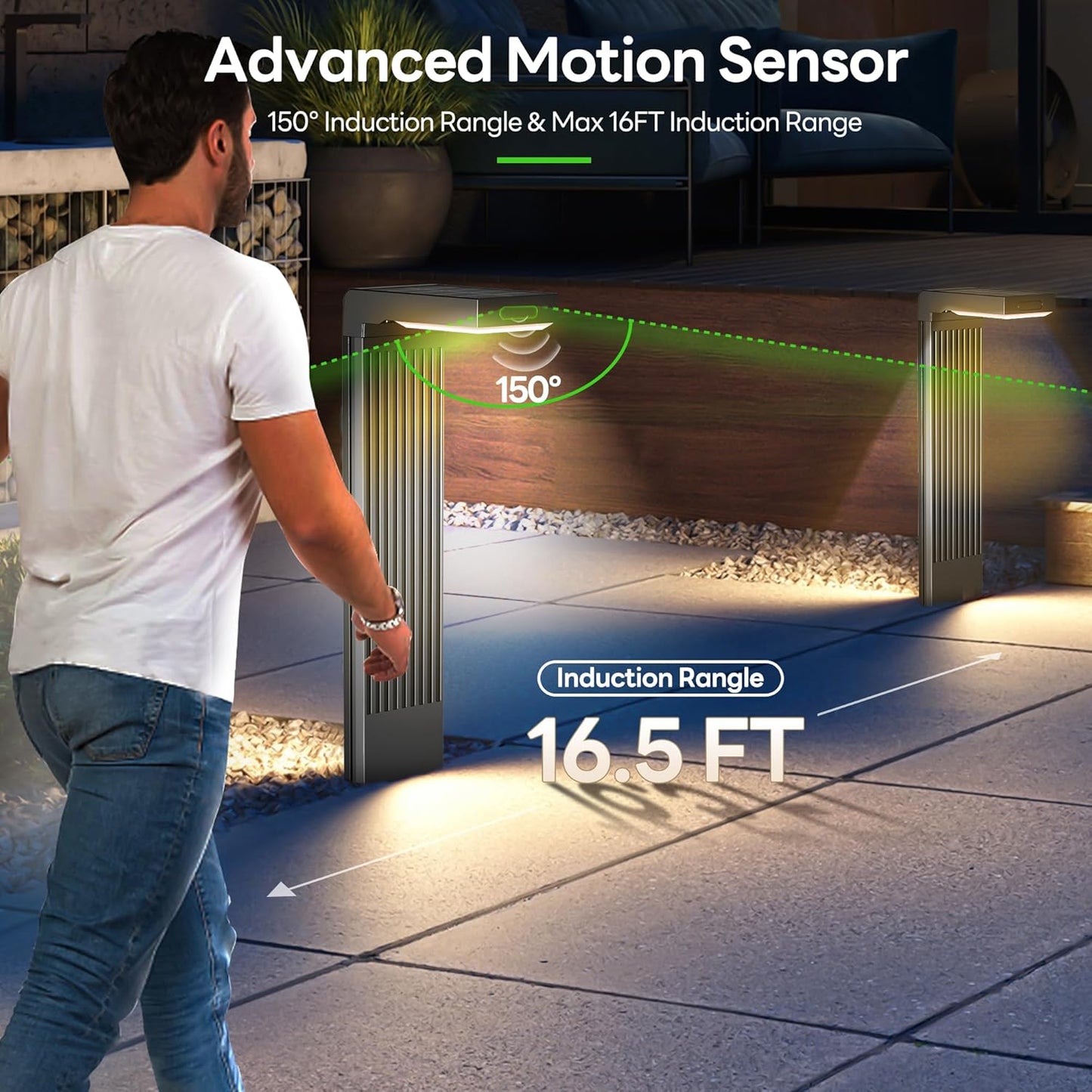 - 150° PIR Motion Sensor - Advanced infrared detection activates 16.5ft/150° wide-angle security lighting instantly. With 400 lumens when people come and a 50-lumen standby mode, it saves 80% energy compared to traditional pathway lights. Ideal for driveways, gardens and dark yards