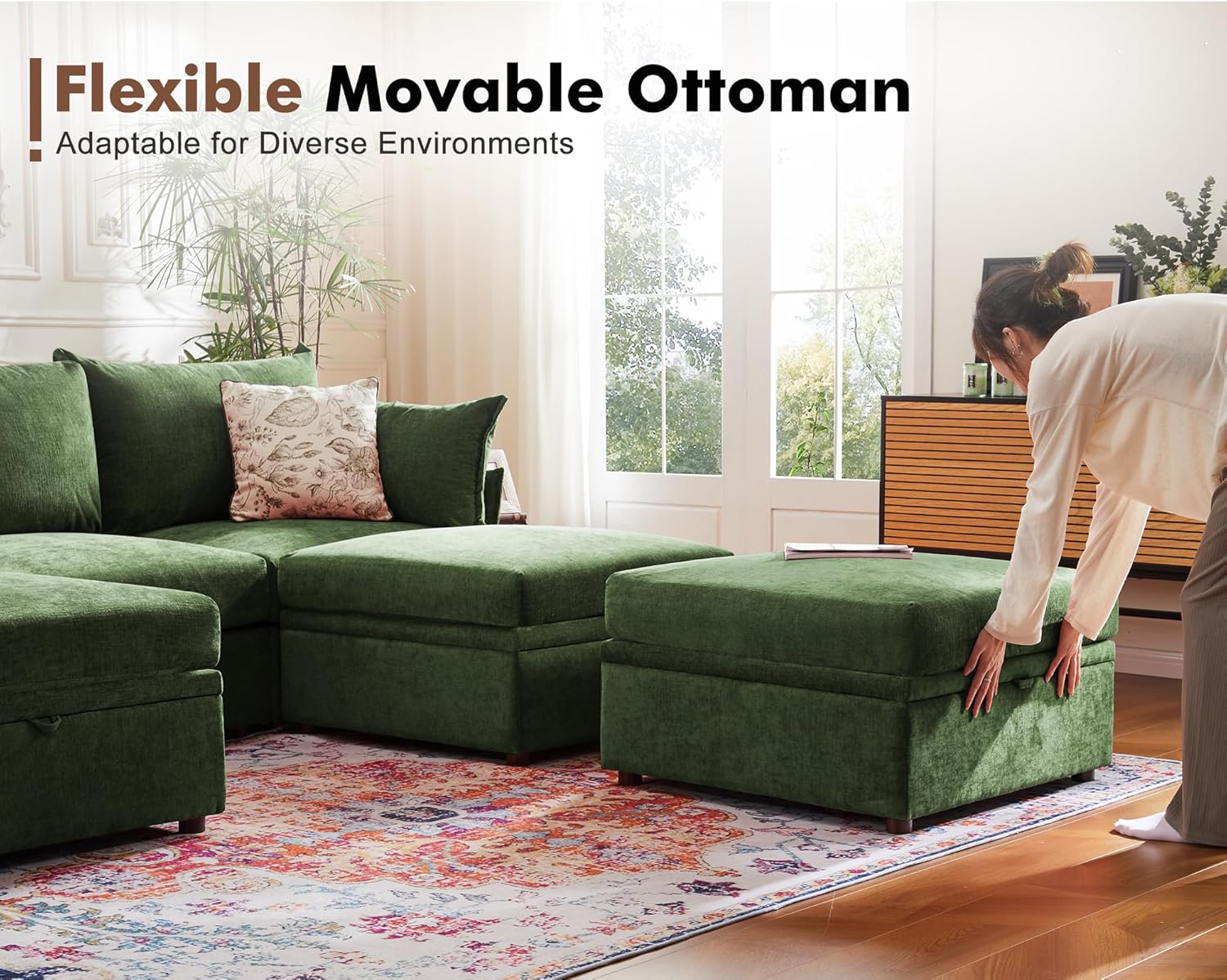 - 💡 Ample and Movable Storage Space: Maximize the functionality of your living room with the built-in storage space under each ottoman. It can be fixed to the seat for enhanced relaxation, or it can be moved to any location. Conveniently store blankets, pillows, or other essentials within reach and out of sight. Say goodbye to cluttered living spaces!