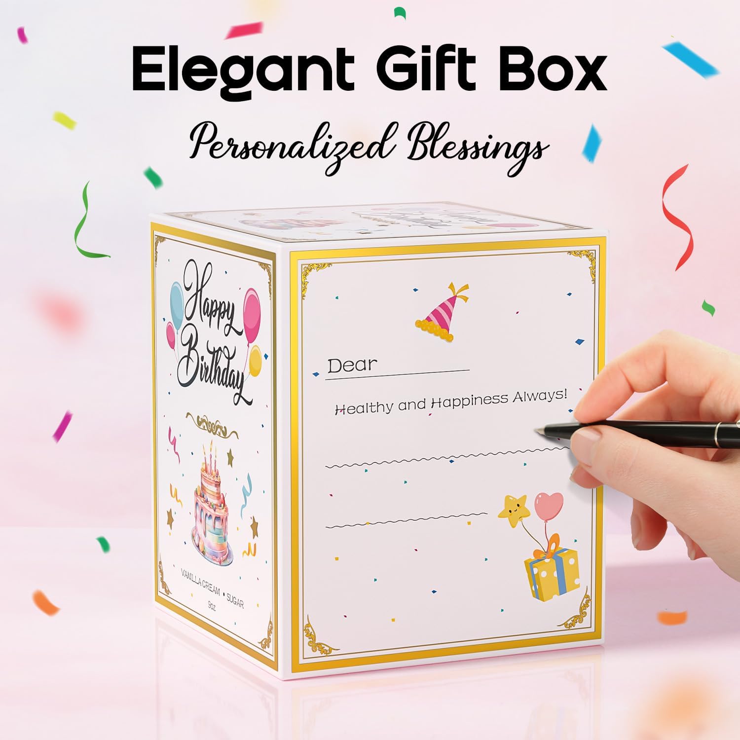 - Happy Birthday Candle: VEGISHINE Happy Birthday Candle, infused with the delightful scent of vanilla cream cake and sprinkled with candy accents. Featuring "Happy Birthday" on the candle, it’s more than just a gift—it’s a heartfelt expression of anticipation and joyful surprises.