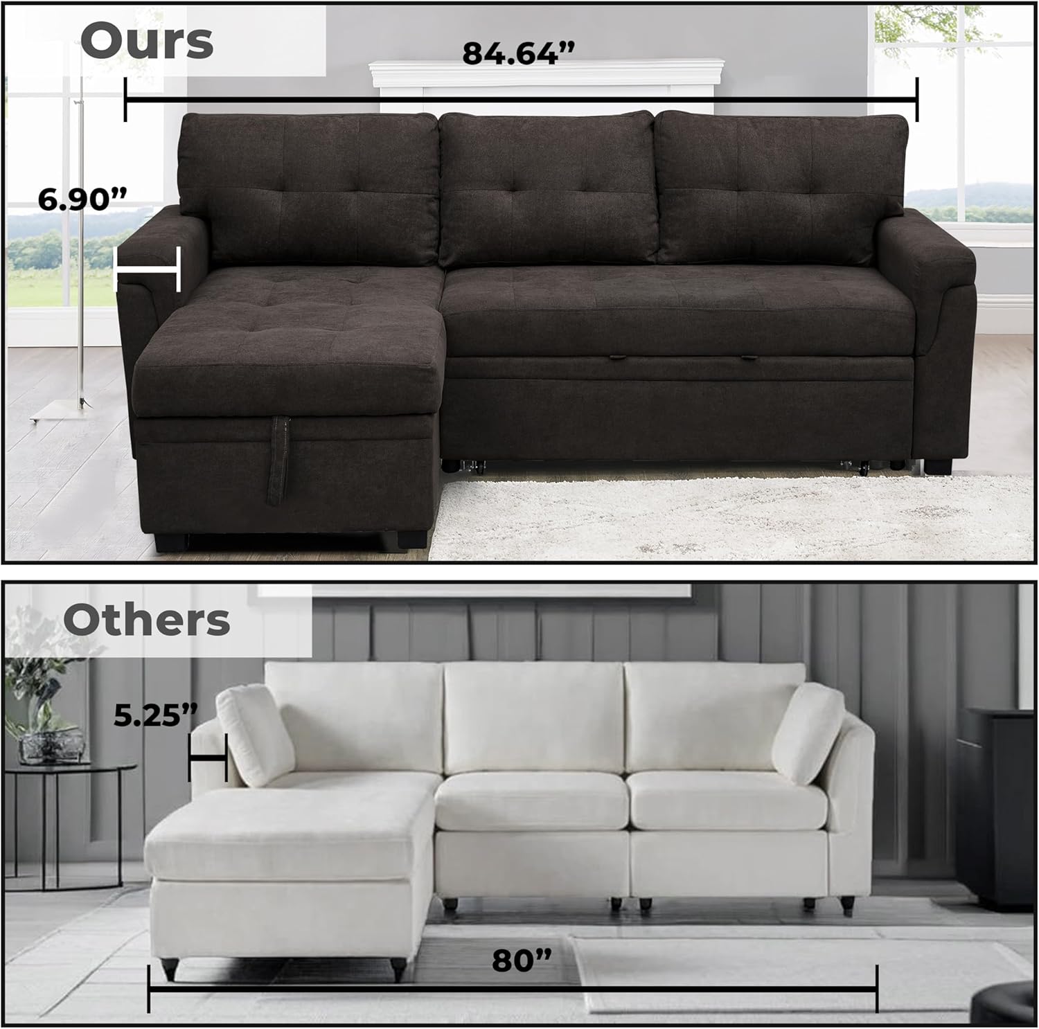 - HIDDEN STORAGE CHAISE: Spacious compartment in the chaise keeps blankets, pillows, and essentials organized, promoting clutter-free living.