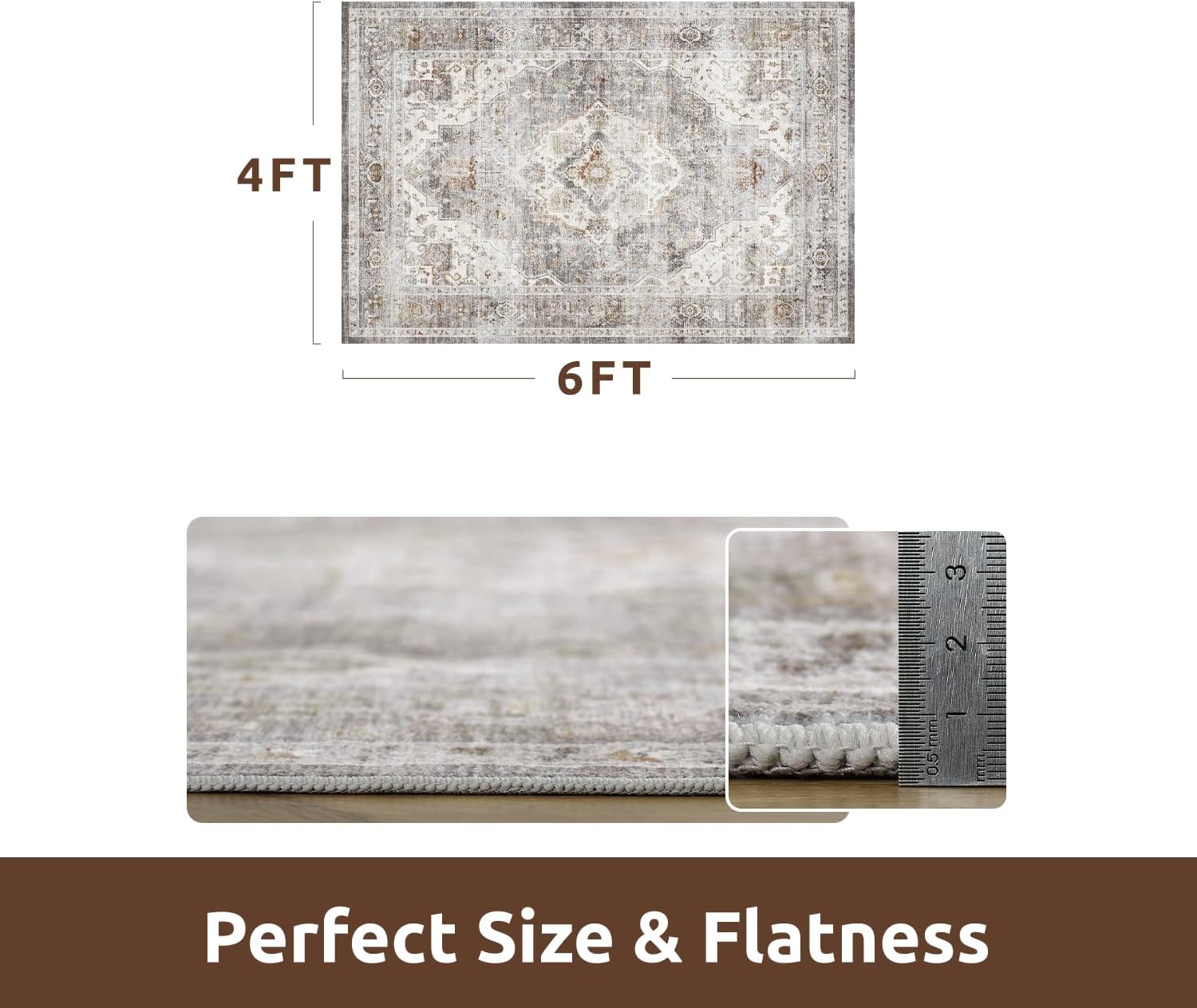 AMOAMI-4X6 Area Rugs for Living Room -Soft Vintage Bedroom Rugs-Non Slip Washable Rug-Throw for Living Room Bedroom Bedside Dining Room Office Grey