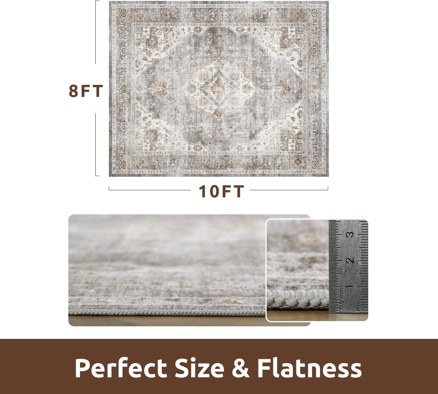 AMOAMI-Area Rug 8X10 Rugs for Living Room-Vintage Soft Grey Rugs for Bedroom-Non Slip Carpet-Washable Rug for Dining Room Living Room Bedroom Office Under Table