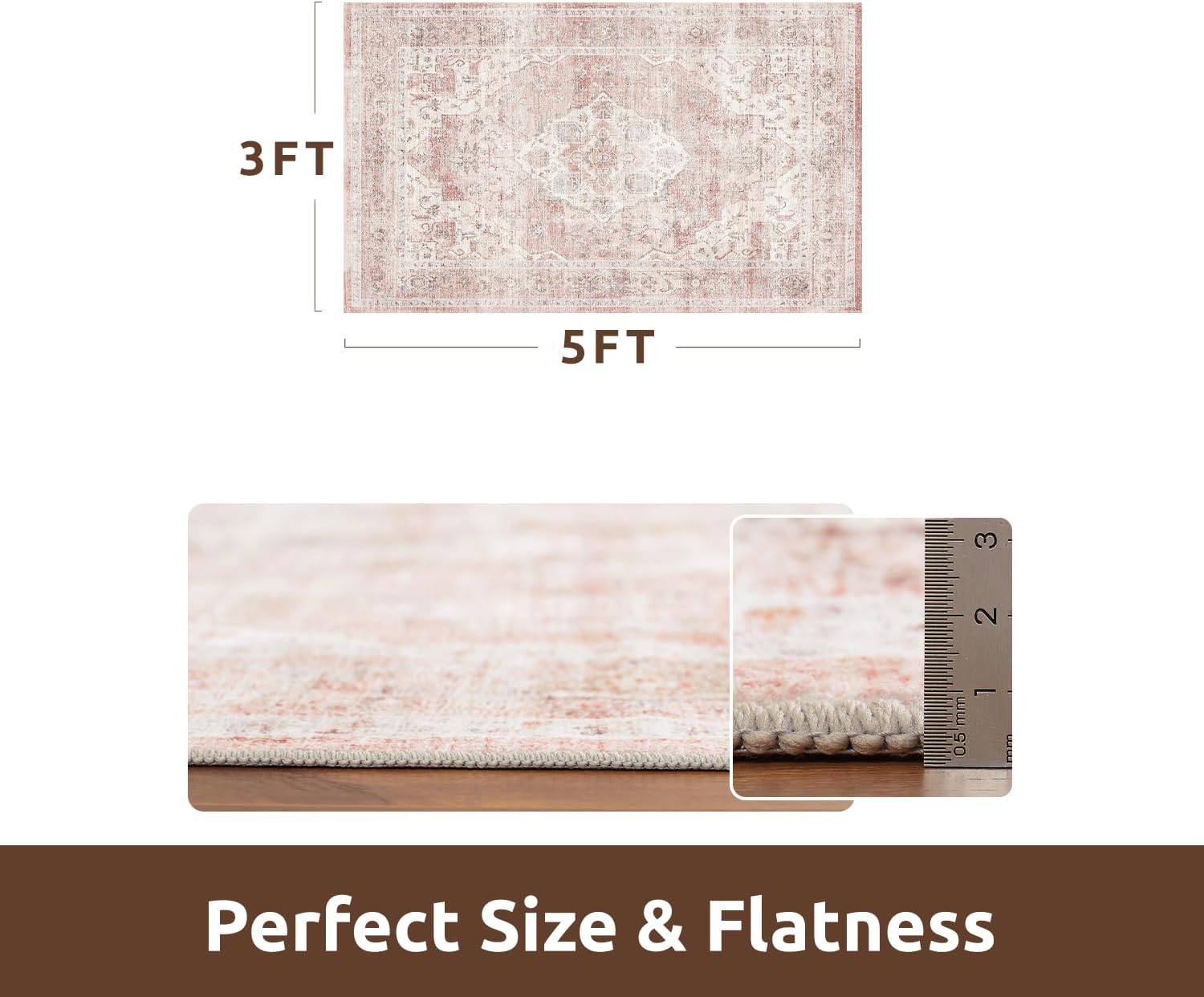 AMOAMI-3X5 Area Rug-Soft Washable Vintage Throw Accent Rugs for Living Room, Entryway, Bedroom, Kitchen, Bathroom, Laundry Room, Kitchen, Bathroom, Bedside, No Slip Pink