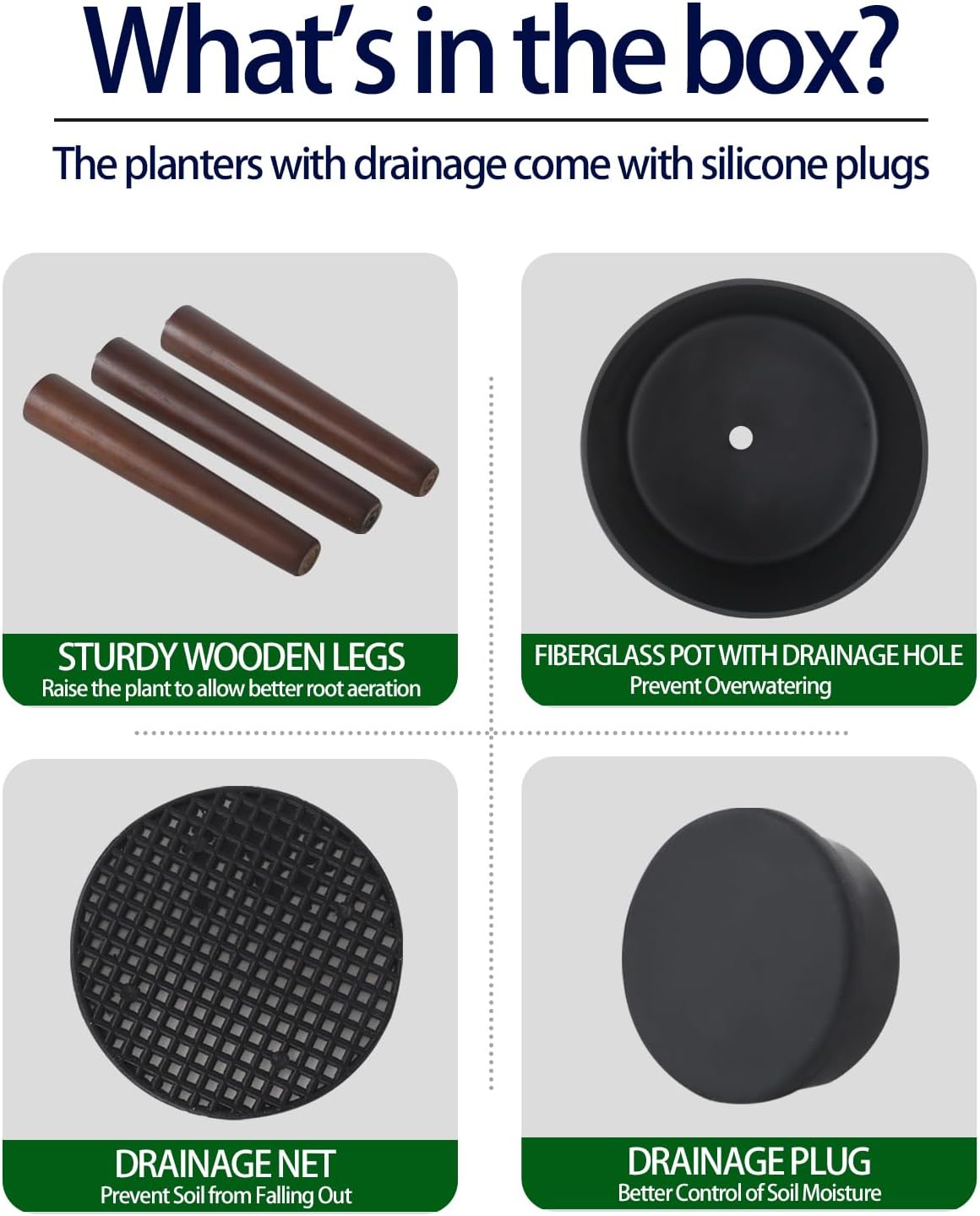 - 【Large Floor Planter】This planter provides ample space for your plants or nursery. the bottom drainage holes come with removable plugs and filters, preventing soil spillage and overwatering. It is ideal for cultivating various plants, including vegetables, flowers, herbs, succulents, cacti, and snake plants.