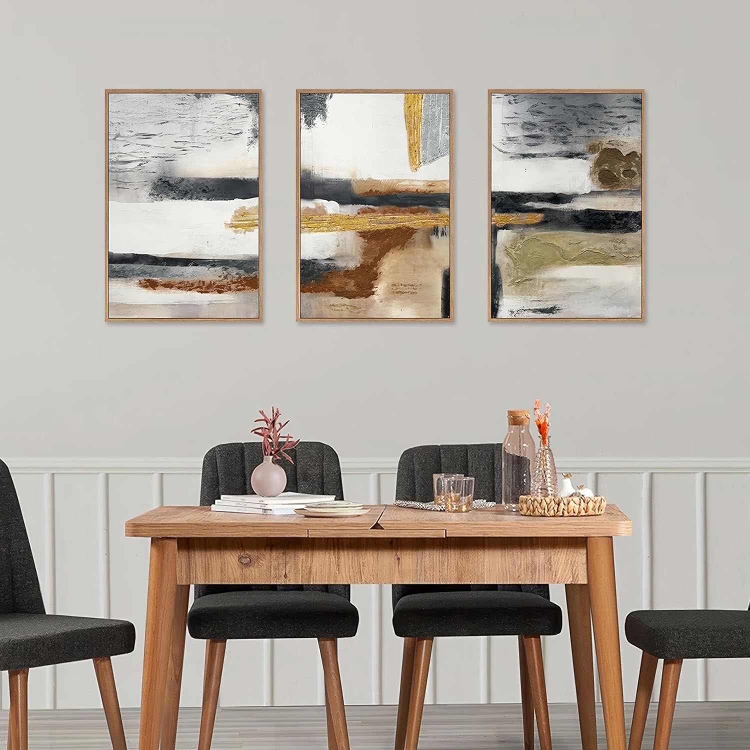 Modern Abstract Framed Canvas Wall Art Set, Neutral Textured Wall Decor, Boho Minimalist Gold and Gray Wall Painting for Living Room, Bedroom, Dining Room, Office - 16" x24" x3