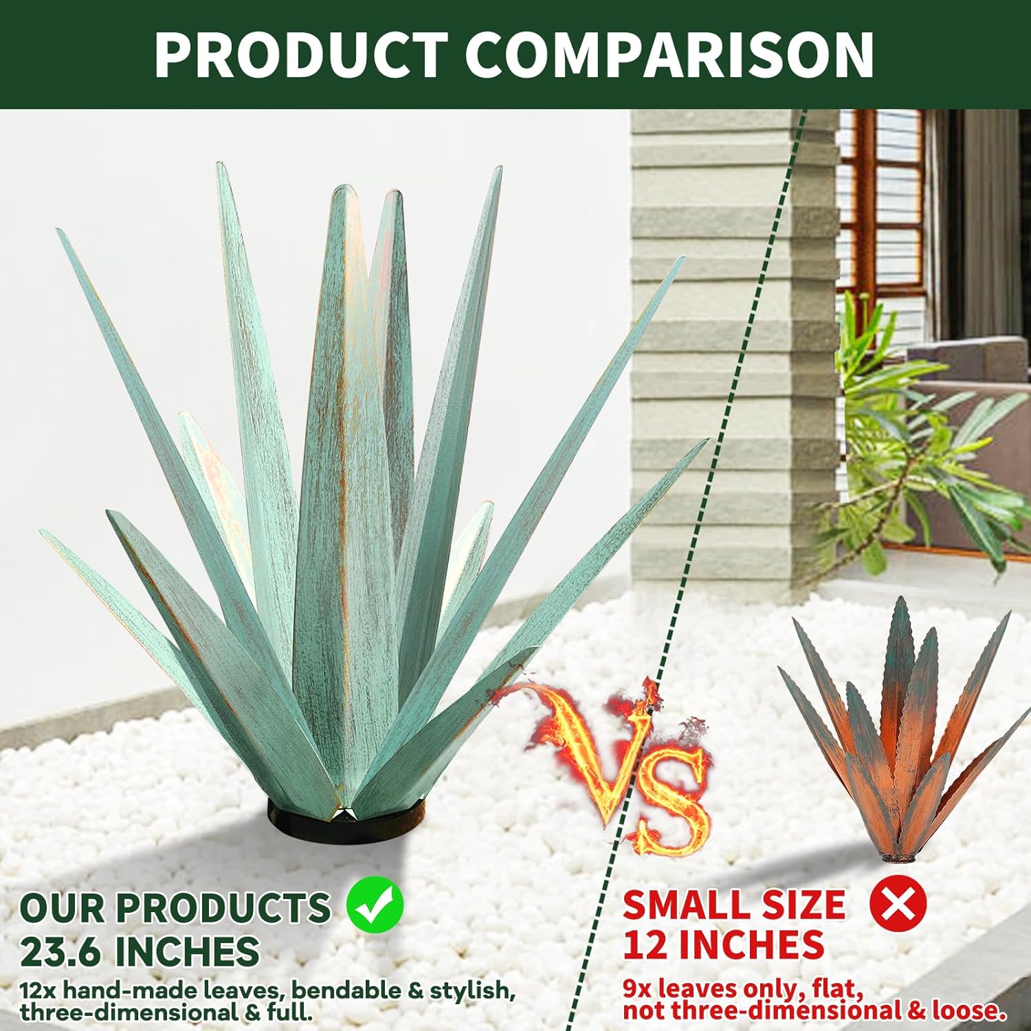- [Easy to Care] - This metal agave plant is perfect DIY outdoor patio decoration ornament, easier to care for than real plants, no need spend time watering or fertilizing, and worrying about dying.