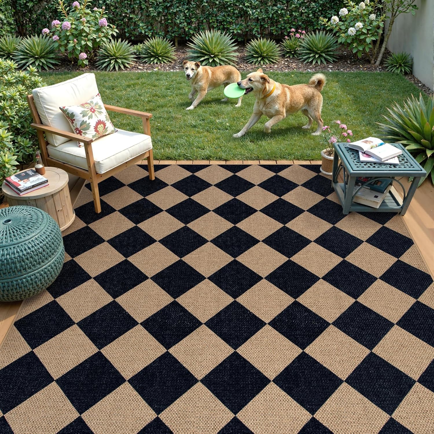 Lahome Checkered Easy Jute Outdoor Rug, 5x7 Area Rugs for Living Room Nature Large Dining Room Carpet, Farmhouse Outdoor Patio Non Slip Diamond Carpet for Home Office Bedroom Backyard Deck