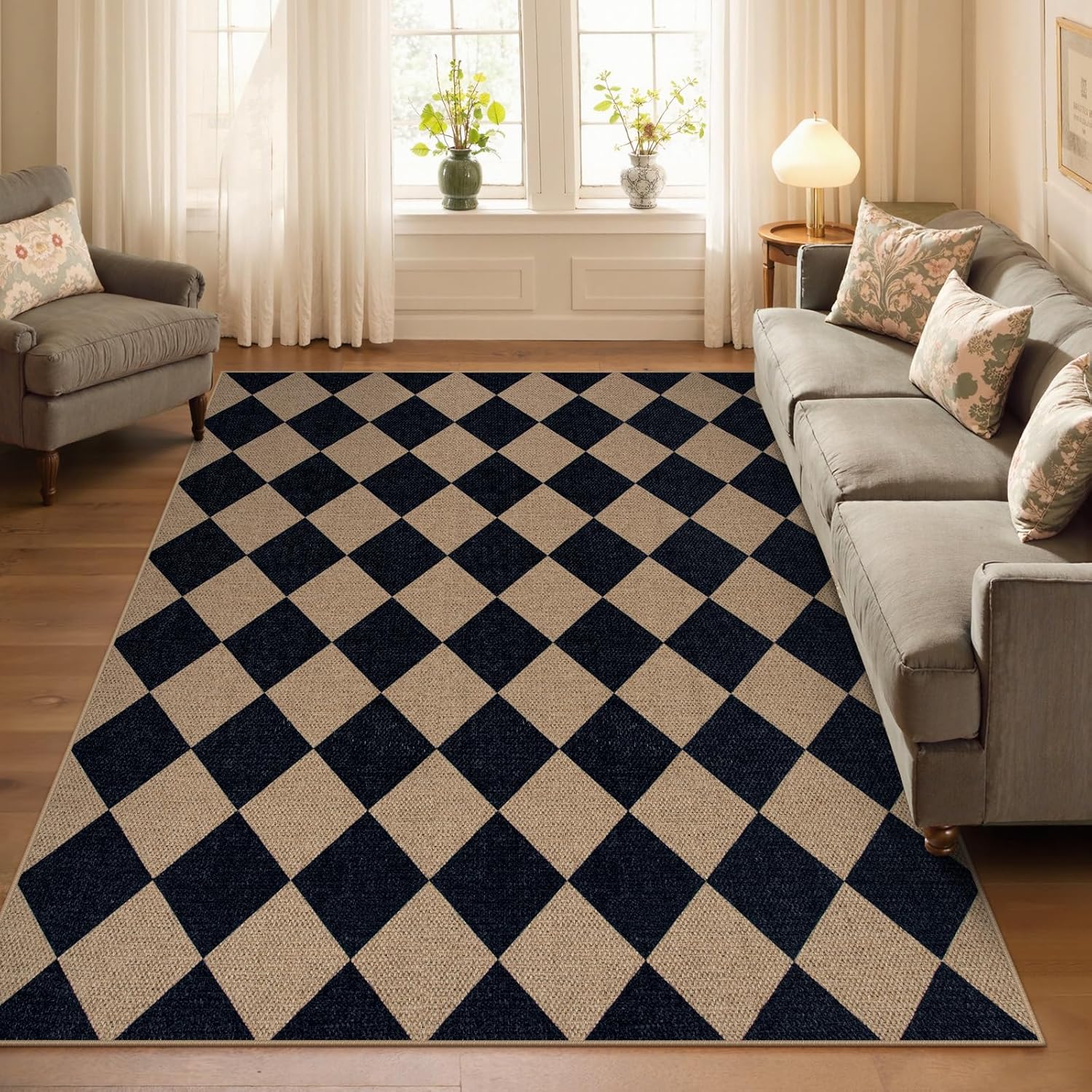 - Modern Checkered Rug: Showcasing checkerboard in black and natural colors, purposely distressed and faded geometric checkerboard design, it makes a great option for anchoring modern farmhouse aesthetics