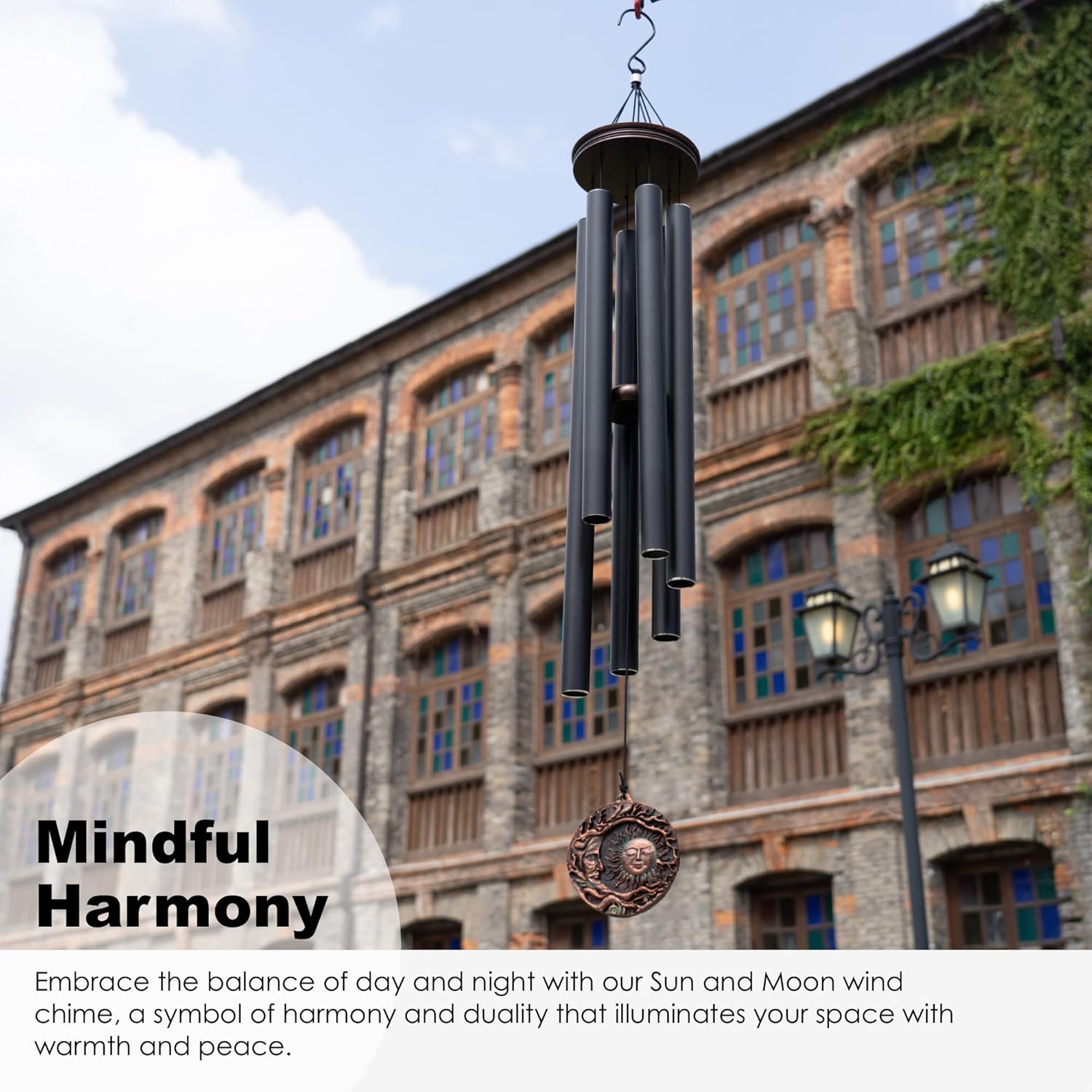 - ♬ Beautiful & Unique Decor - Beautifully crafted Sun and Moon face Wind Spinner, bringing a sense of balance, serenity, and timeless beauty. This black satin-colored wind chime adds a premium touch to your home, garden, patio, balcony, porch, or yard. Its peaceful melody promotes relaxation, creating a zen atmosphere in your favorite spaces.