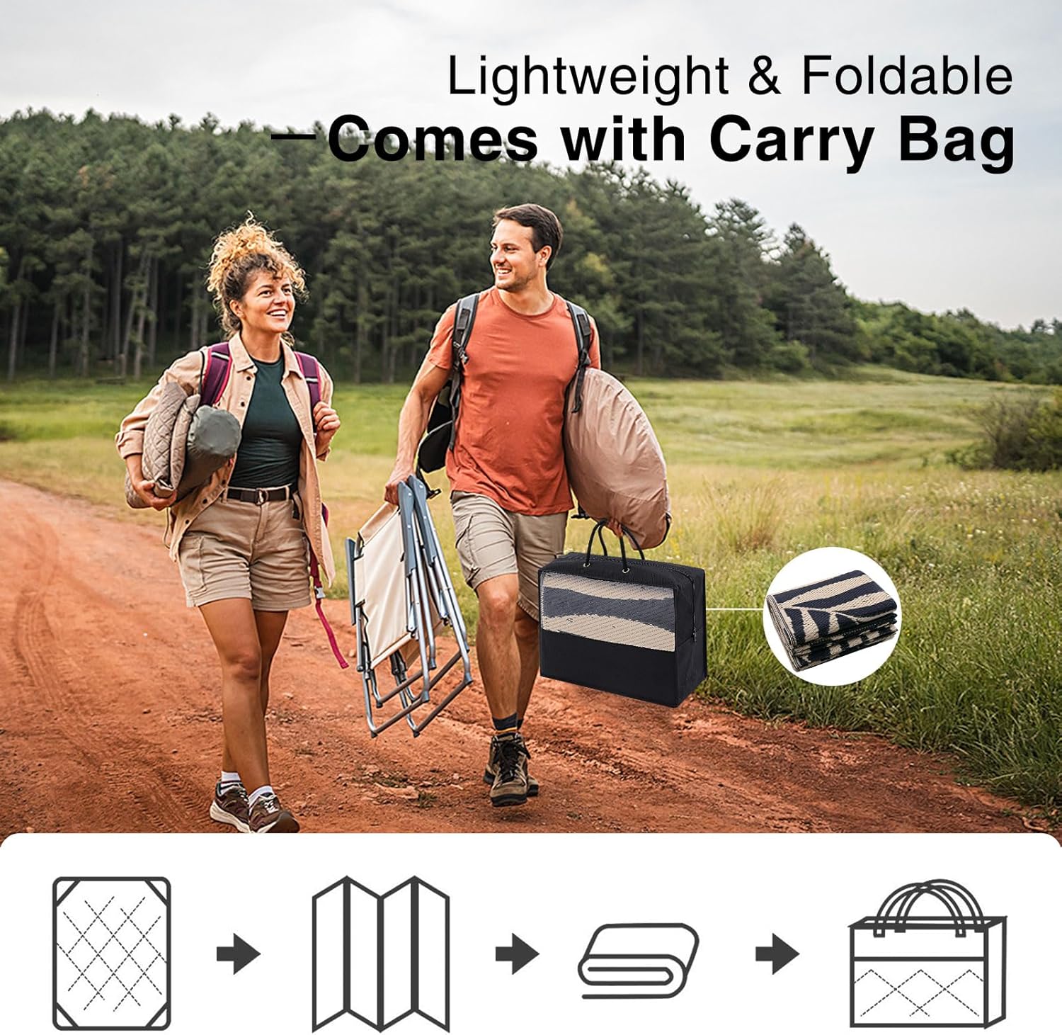 - Portable & Convenient: Lightweight and foldable, our waterproof rugs are easy to transport and store, making them ideal for travel and camping. They even come with a matching carry case for effortless portability.