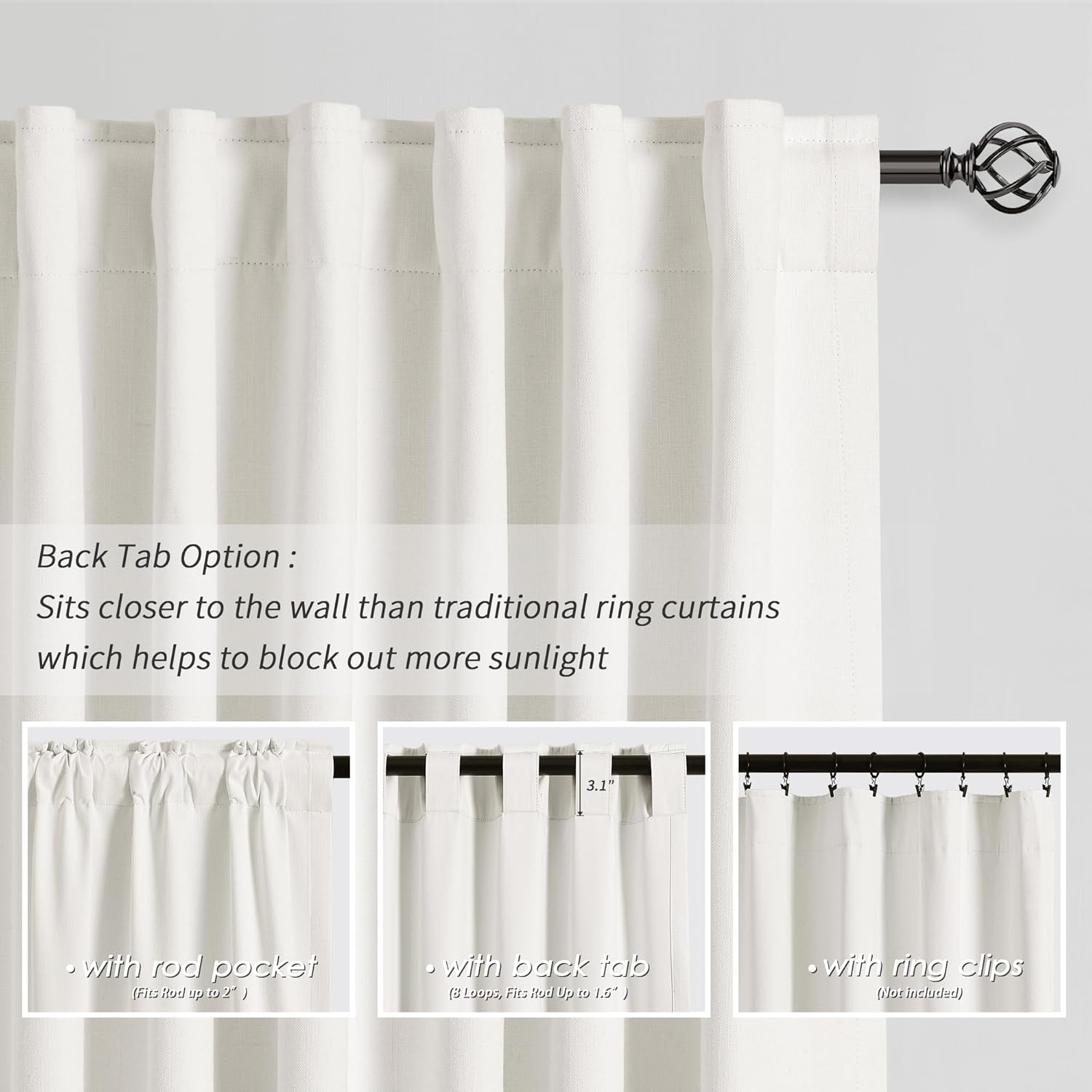 Natural Linen Blackout Curtains Thermal Insulated 120 Inch 100% Complete Black Out Window Curtains Back Tab Ivory Linen Textured Neutral Farmhouse Living Room Darkening Drapes High Ceiling Length
