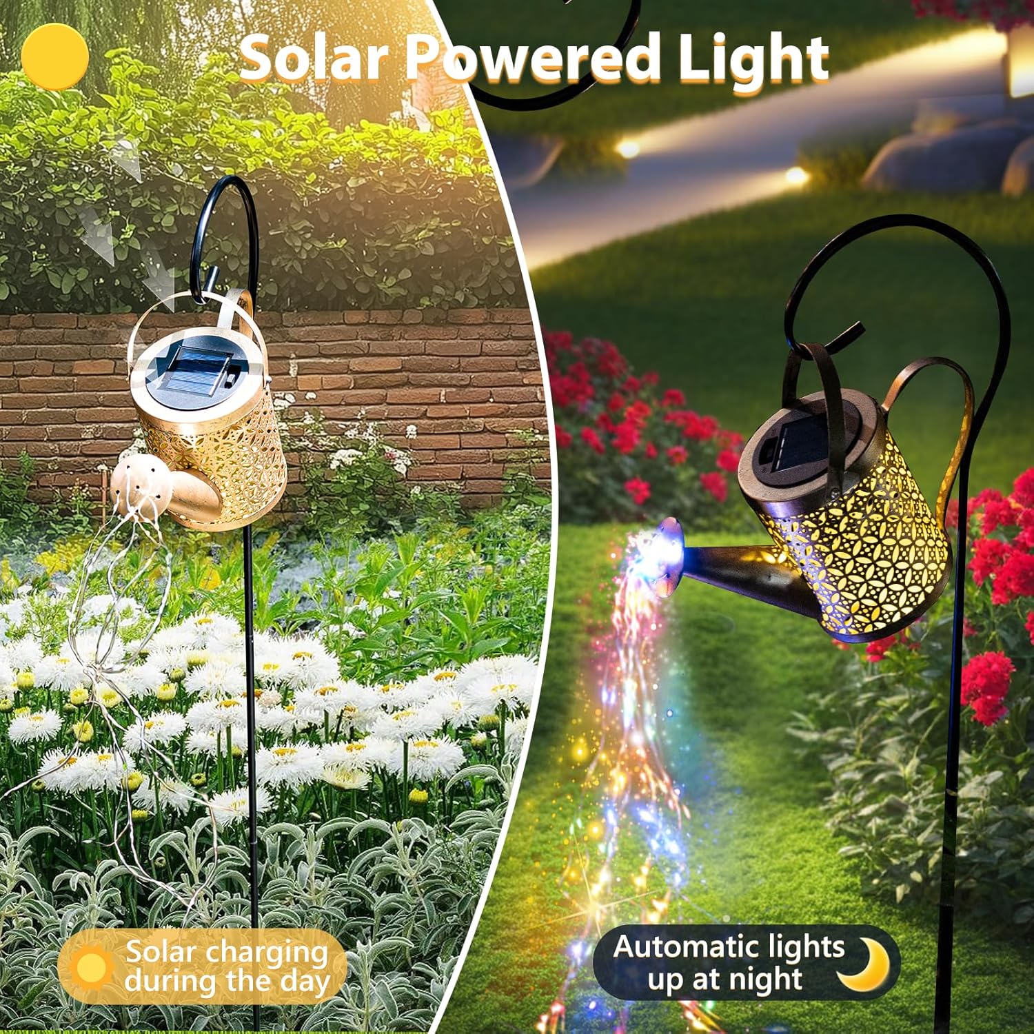 - Tool-Free Solar Watering Can Light: Installs in just 3 minutes with 3 simple steps: 1. Attach handle & hook 2. Insert into lawn 3. Hang the light. No wiring or external power needed.
