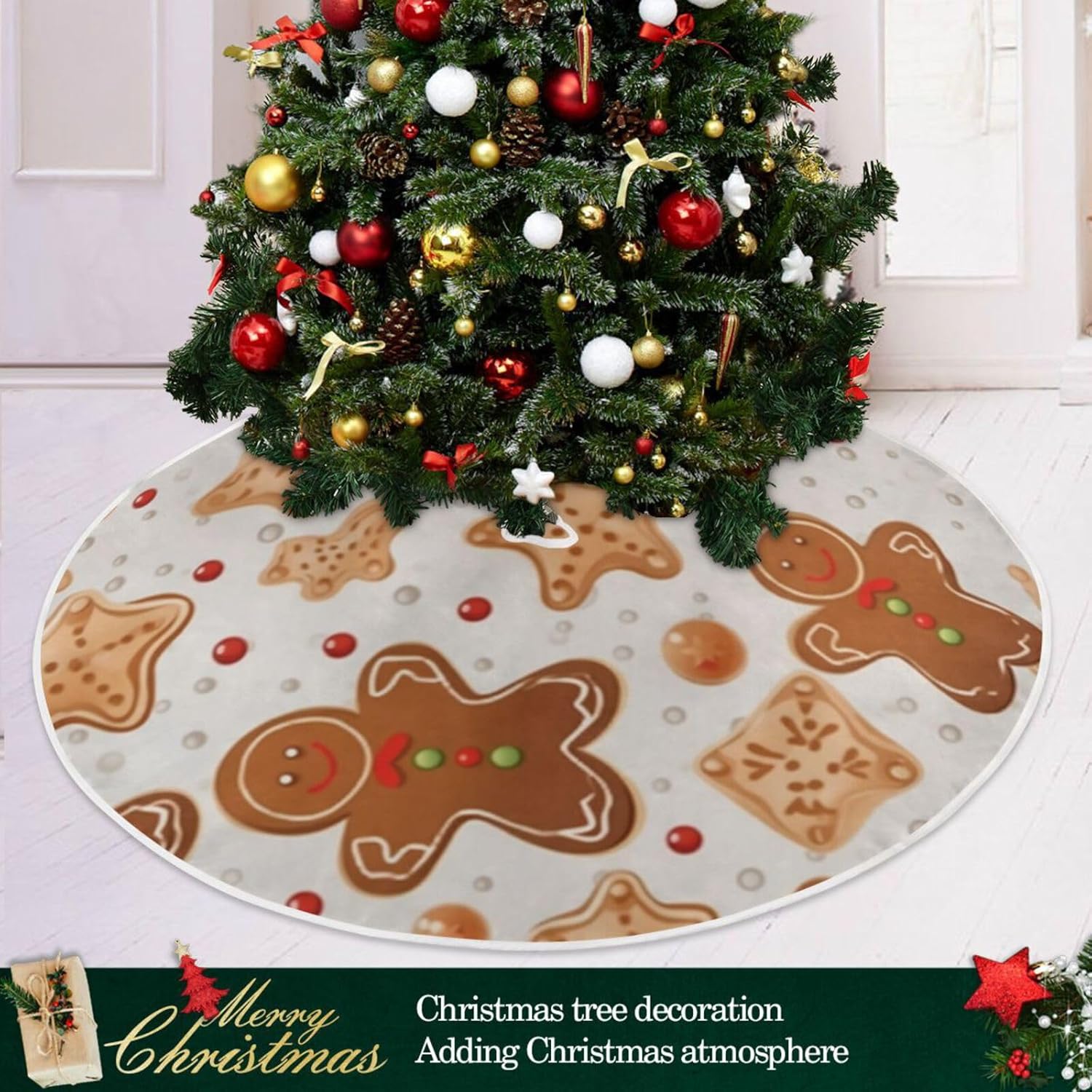 Gingerbread Christmas Tree Skirt - 36 Inch Xmas Tree Mat for New Year Party Decorations