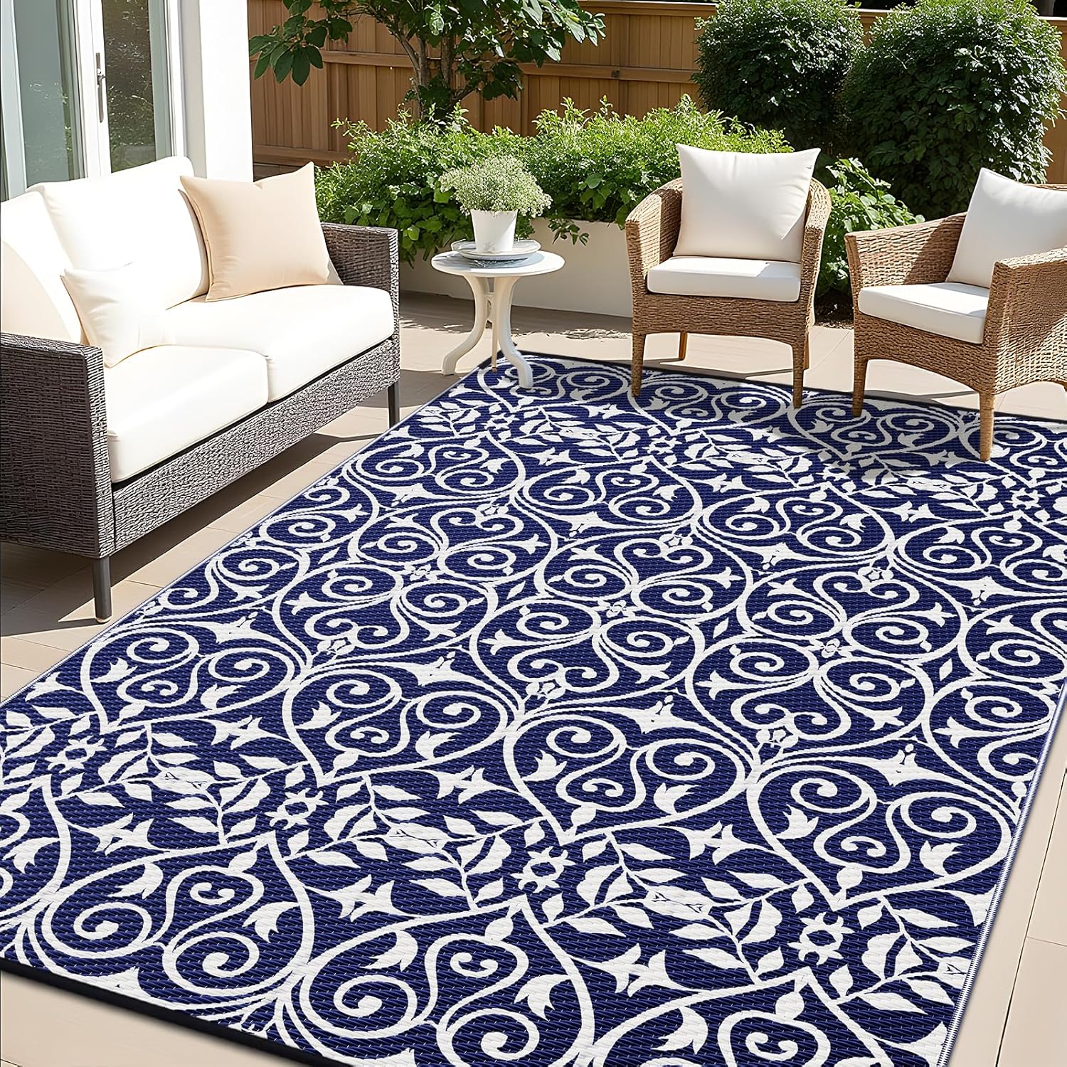 - UV-Resistant & Durable: Equipped with a UV-protective layer, this outdoor patio rug resists fading, keeping its vibrant colors intact even under prolonged sun exposure. Reinforced edges add extra durability, making it a reliable choice for all-weather use.