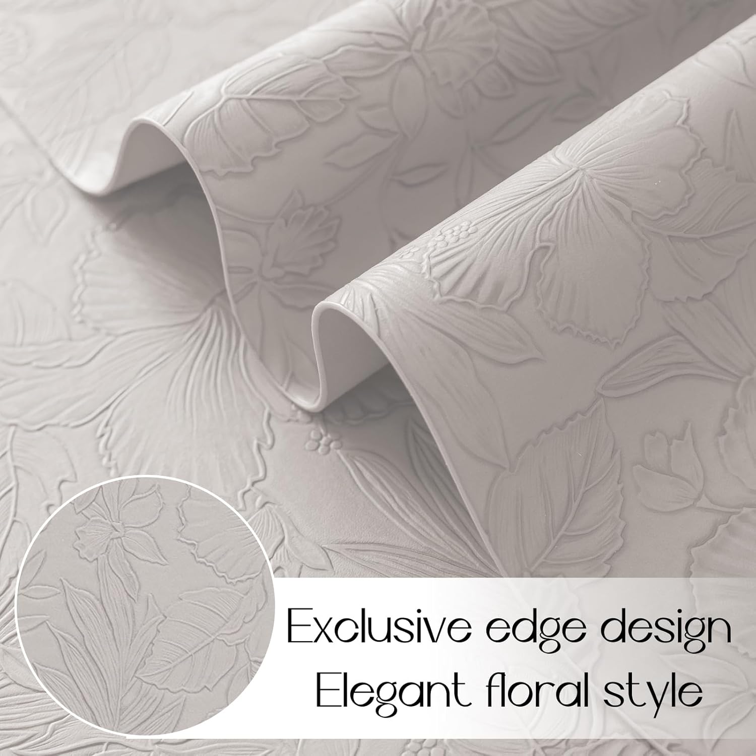 Romanstile Vinyl Placemats Set of 4-12 X 18 Inch - Heat Resistant Non-Slip Embossed Floral Place Mats 100% Waterproof Oilproof Wipeable Faux Leather Table Mats for Kitchen/Dining/Party, LightGrey