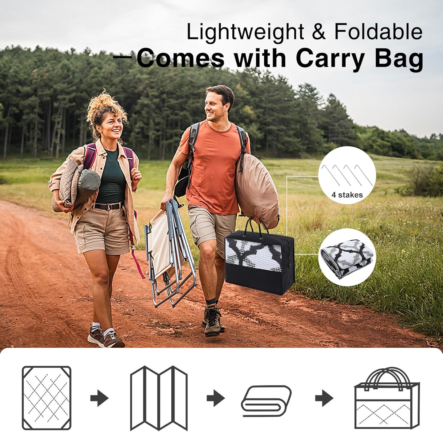 - Lightweight & Portable: Easy to fold and carry, this camping rug is your go-to for outdoor adventures. Ideal for camping trips, gatherings, or sports events, it ensures comfort and style wherever you go.