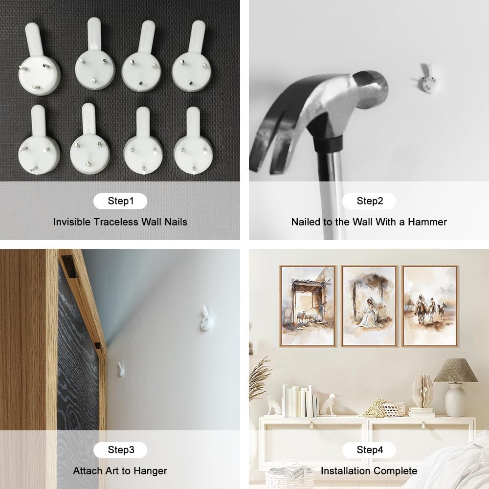 - 【Easy To Hang】The Easter Jesus framed picture set is easy to hang, ready to hang, it is finished with metal hooks and non-trace nails. It will only take about 5 minutes for you to hang it up.
