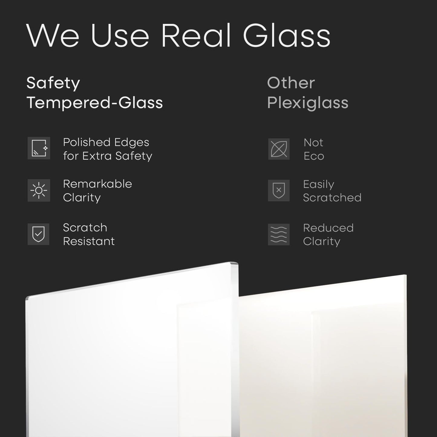 - GALLERY GRADE GLASS, TRUE CLARITY. Why settle for cloudy plexi? Our ultra-clear tempered glass sharpens every detail and adds instant polish to your photo or print.