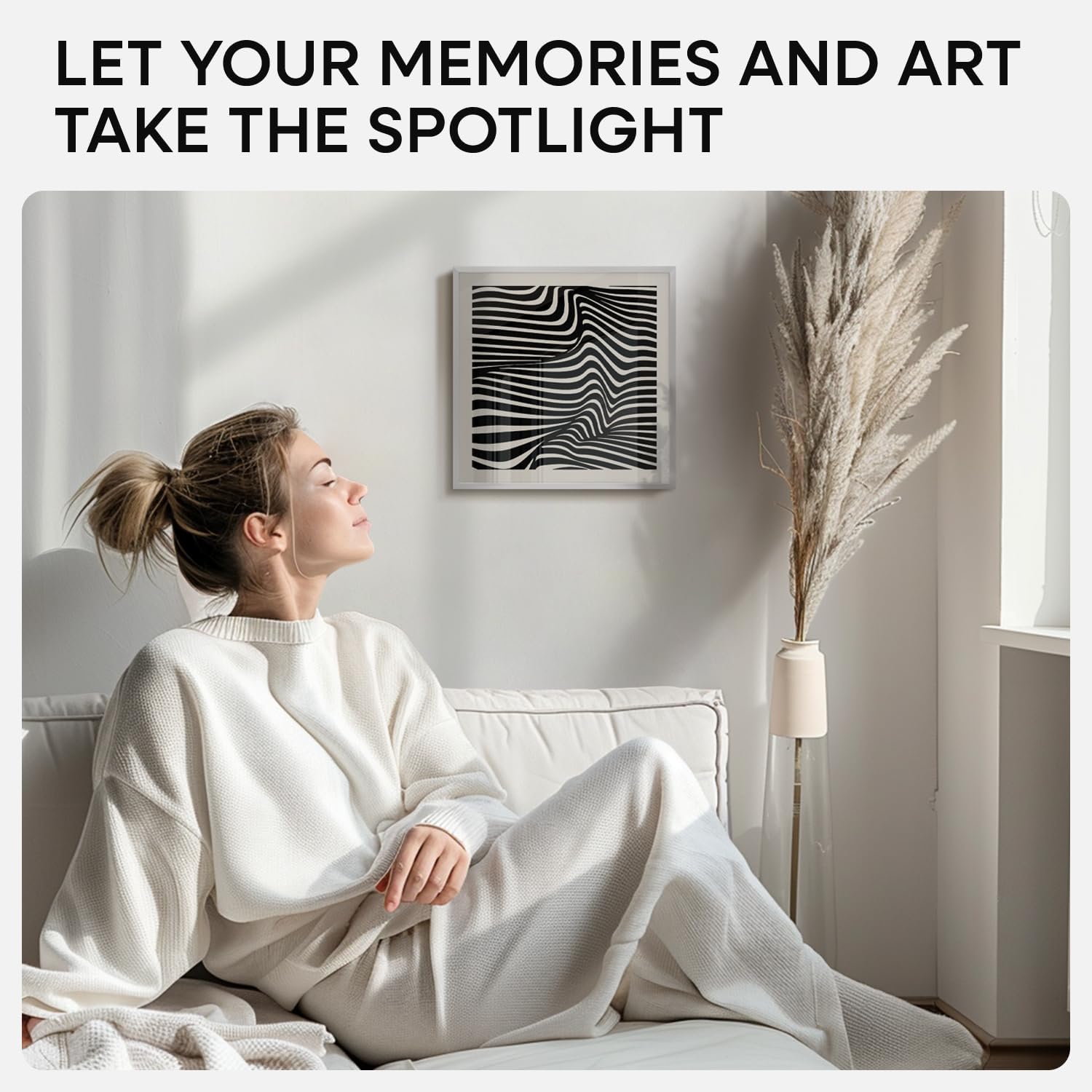 - MATTED OR EDGE-TO-EDGE—YOUR CALL. A crisp 9x9 white mat creates negative space, elevating your image with gallery precision. Or remove it for 11x11 bold, uninterrupted impact.