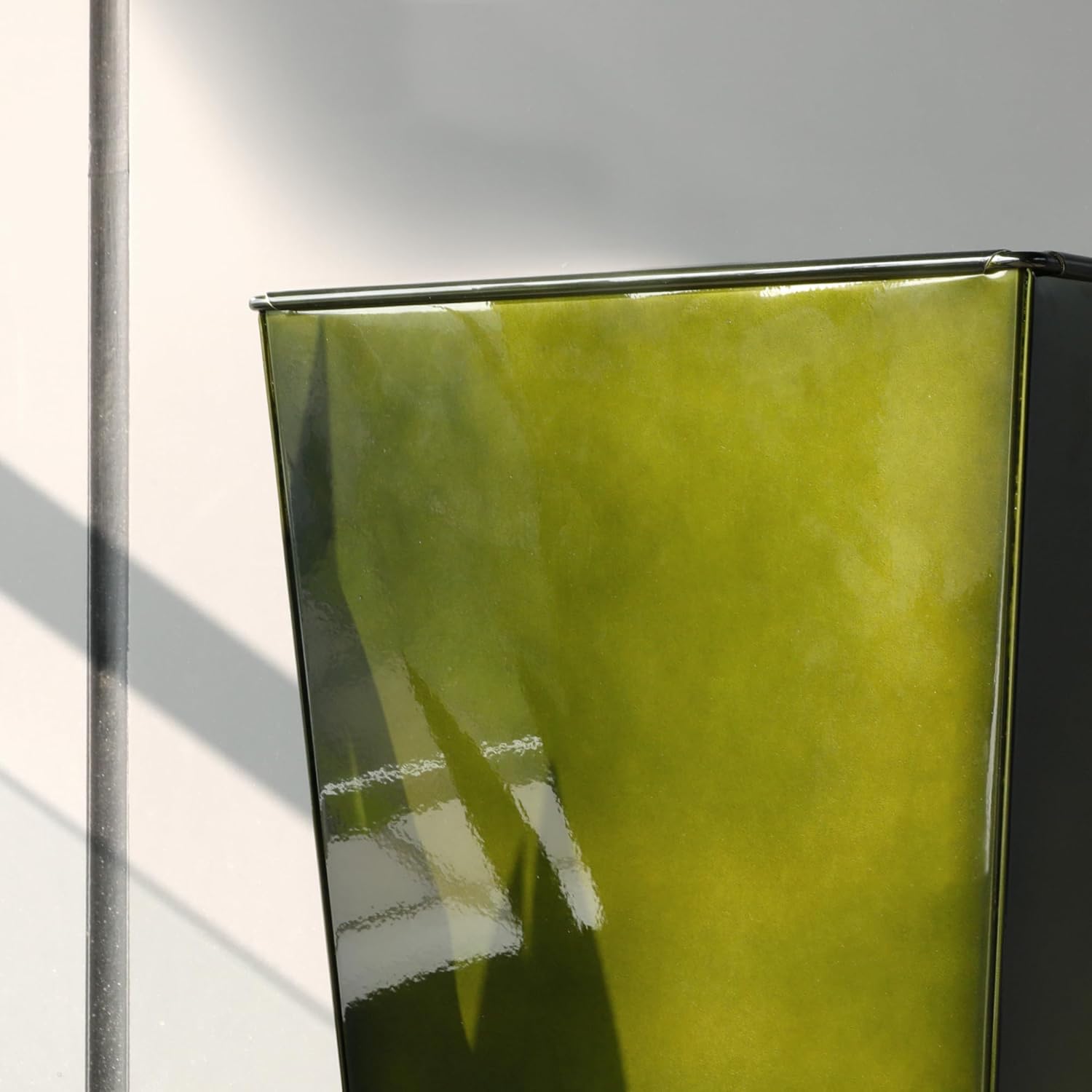 KOL 25'' & 28'' Tall Bright Glazed Planter with Insert, Set of 2, Galvanized Steel Planter Metal Pots with Drainage Hole for Indoor & Outdoor Use, Decorative Plant Pots for Front Porch, Patio - Green