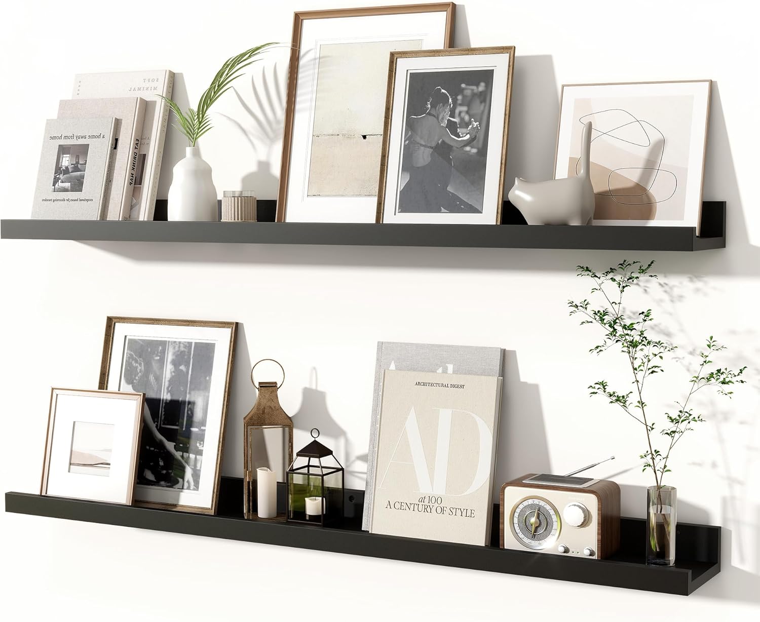 Fun Memories Picture Ledge Shelves Set of 2, 36 Inch Rustic Wall Mounted Floating Shelves with Lip for Home Storage and Décor in Bathroom, Kitchen, Nursery, Bedroom, Living Room, Black