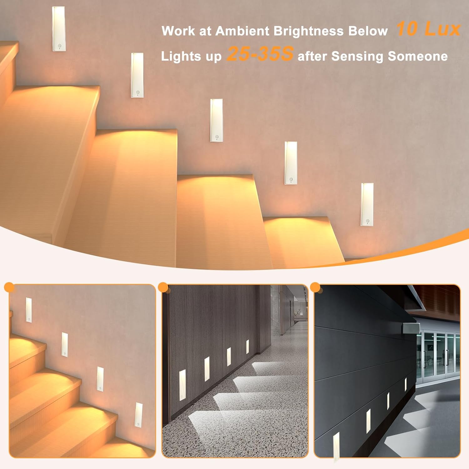 3W Recessed Motion Sensor Step Light, 3000K Warm White Night Wall Lights for Indoor Hallway, IP65 Waterproof Trimless Stair Lighting (White Finish)
