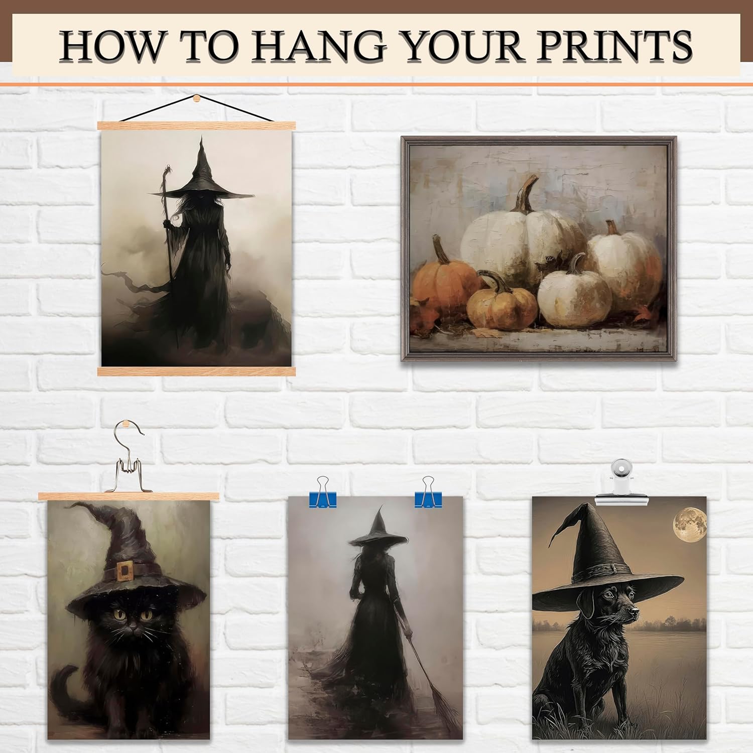 LANCHI95 12 Pcs Halloween Wall Art Prints, Vintage Witch Posters, Cute Ghost Pictures for Bedroom Decor (UNFRAMED)