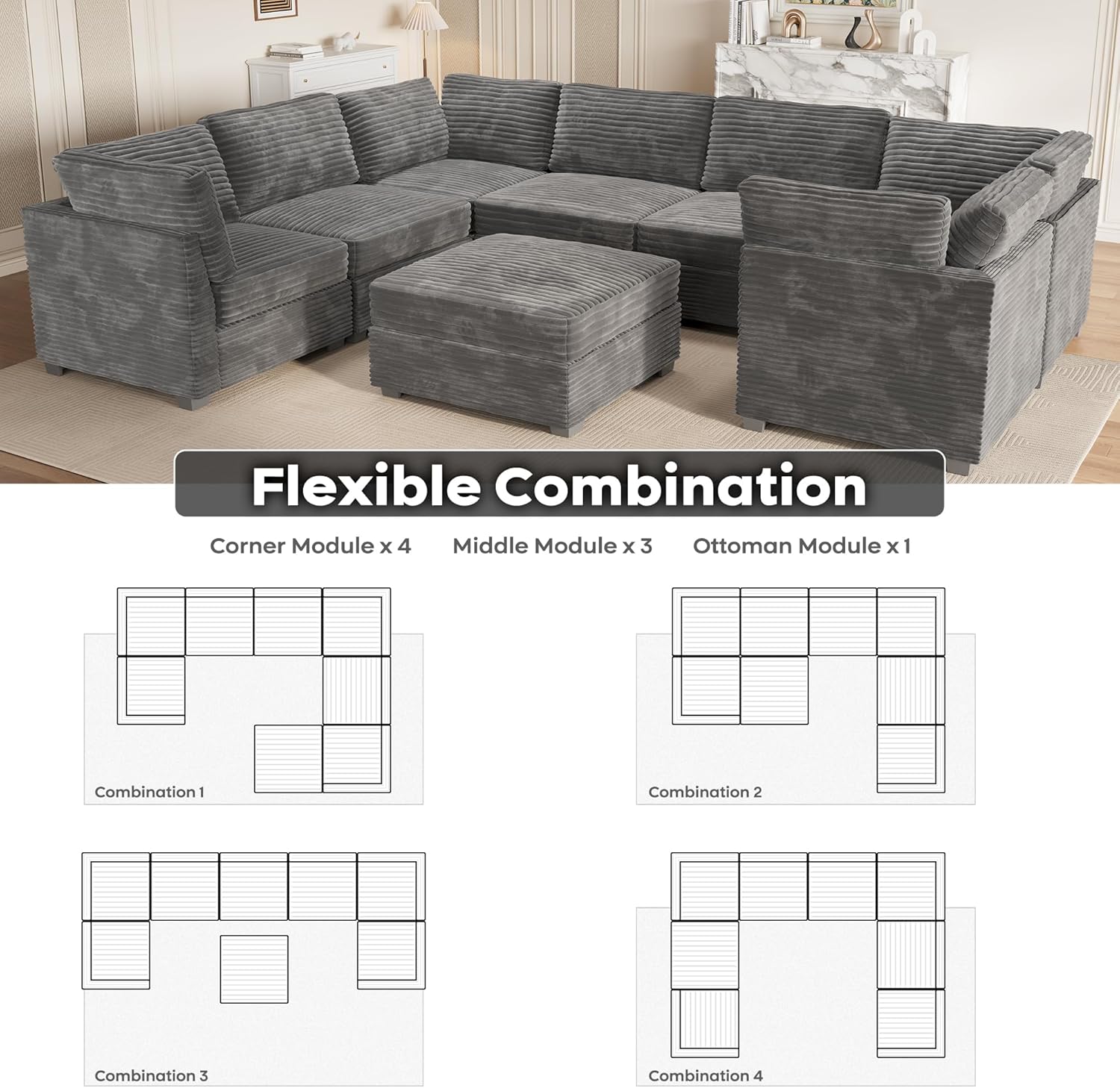 - Versatile Modular Sofa Couch: Modular sectional sofa couch allow different households to move and reassemble freely for flexible combination, customized DIY combination transforming into an L-shaped, U-shaped V-shaped or sofa bed that suits your space and style. The more seat modular you add, the greater opportunity that you get to enrich and shape your life space, perfect for movie night, parties or home theaters