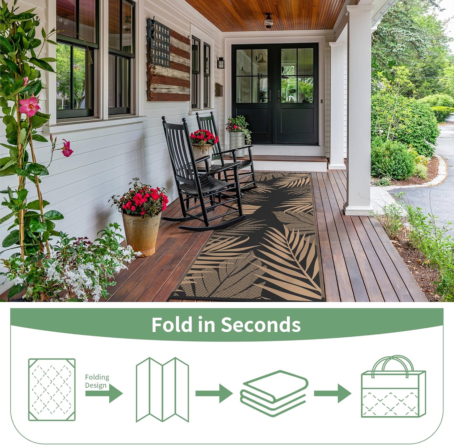 - Palm Leaf Design & Double-Sided Pattern: GENIMO reversible fall outdoor rug is designed with a double-sided pattern, completing the unique layout of multiple palm leaves. The 2 shades of black and brown achieve the ultimate fusion. Either side can blend perfectly with nature and look very full and comfortable, making it a versatile piece for fall decor