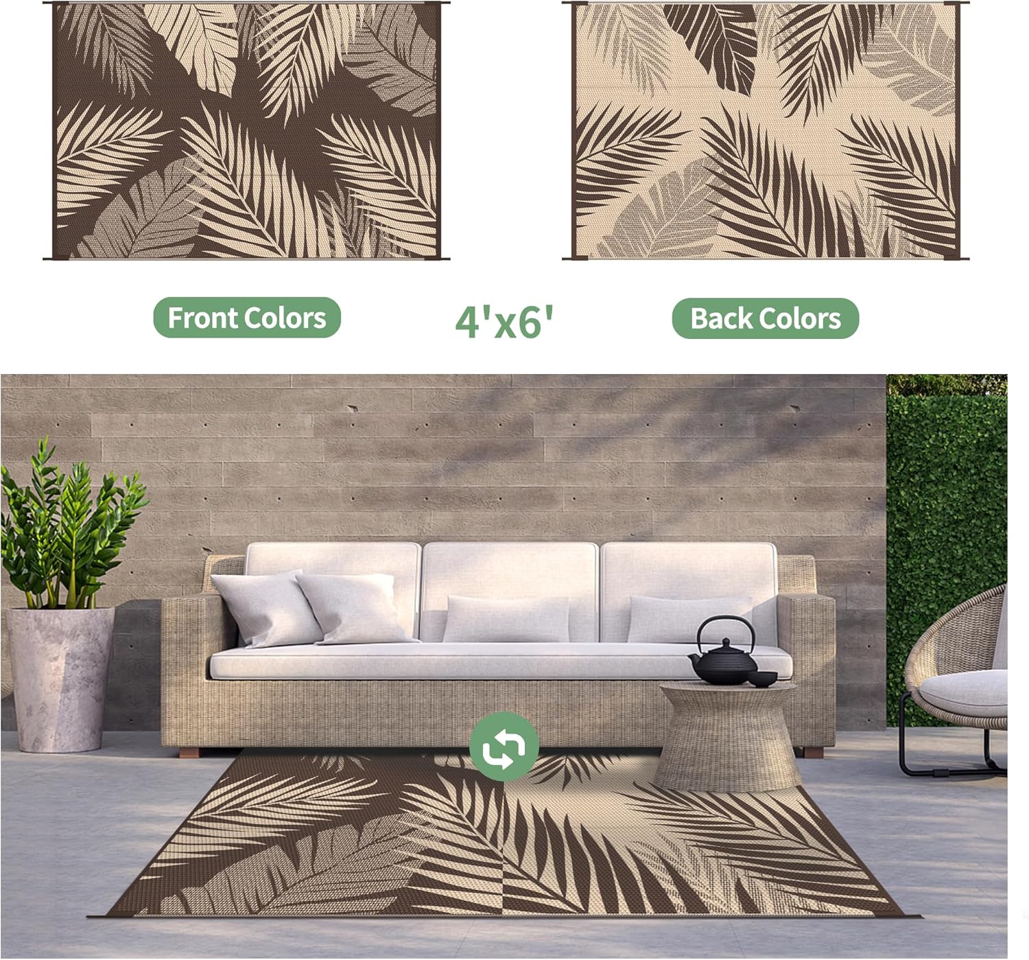 GENIMO Outdoor Rug 4' x 6' Waterproof for Patios Clearance, Reversible Outdoor Plastic Straw Camping Rug Carpet, Large Area Rugs Mats for RV, Camper, Deck, Balcony, Porch, Beach, Coffee&Beige
