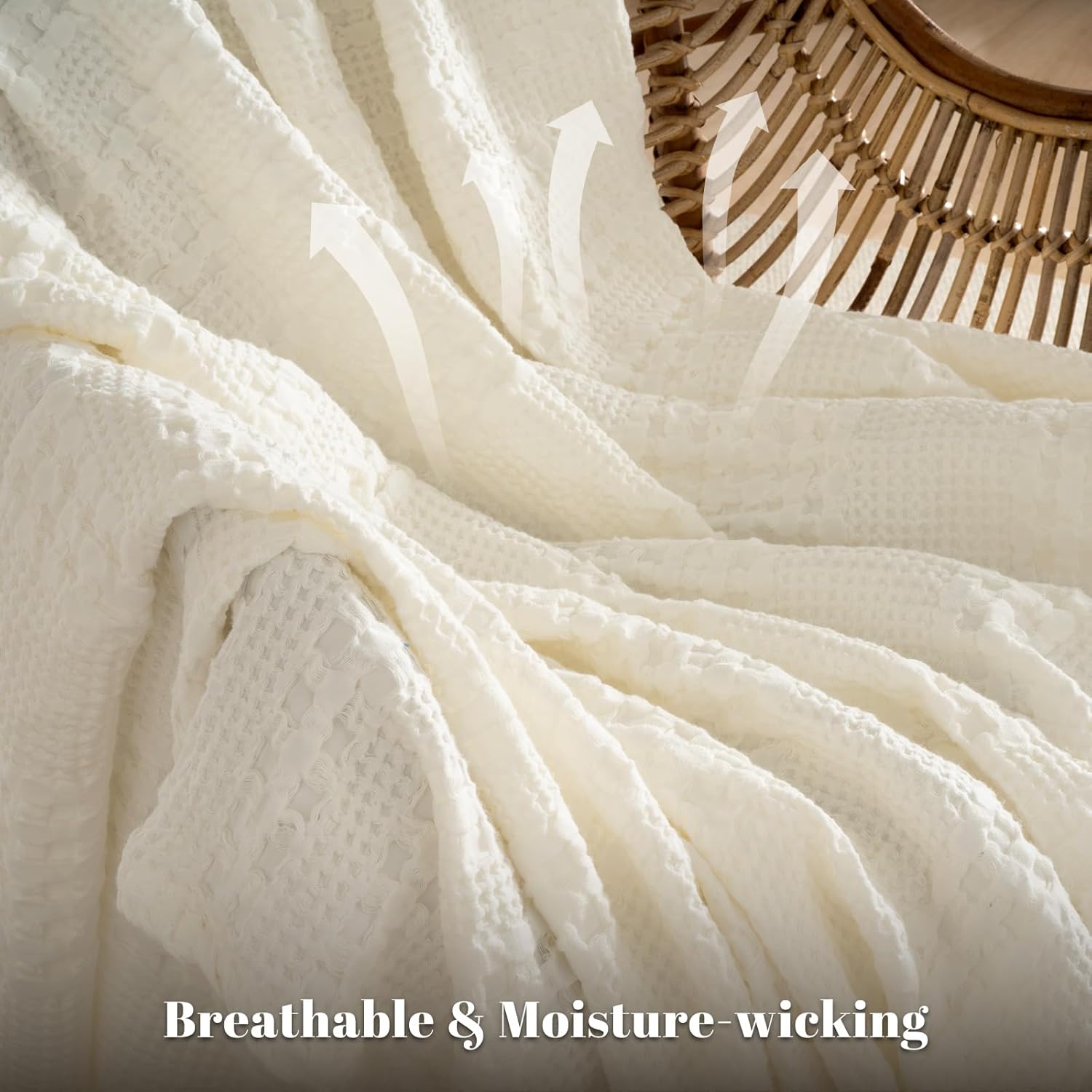 PHF 100% Cotton Waffle Weave Blanket King Size, Soft Lightweight Breathable Cozy Summer Blankets for Bed, Luxury Aesthetic Woven Bedding for Home Decor, 108"x90", Ivory