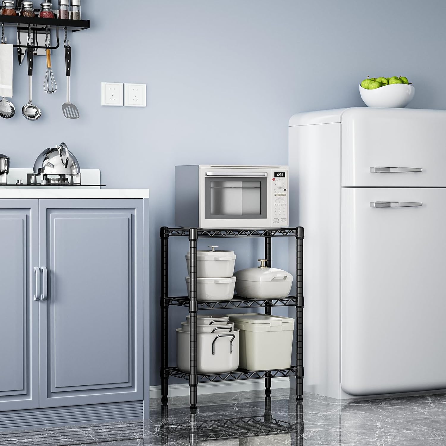 - SPACE MAGICIAN: This storage shelf is exquisitely designed to maximize efficiency in small spaces. Its multiple wire shelves provide ample vertical storage capacity, making it an ideal choice for narrow areas or corners. The product dimensions is 11.8" D x 21.7" W x 28.6" H