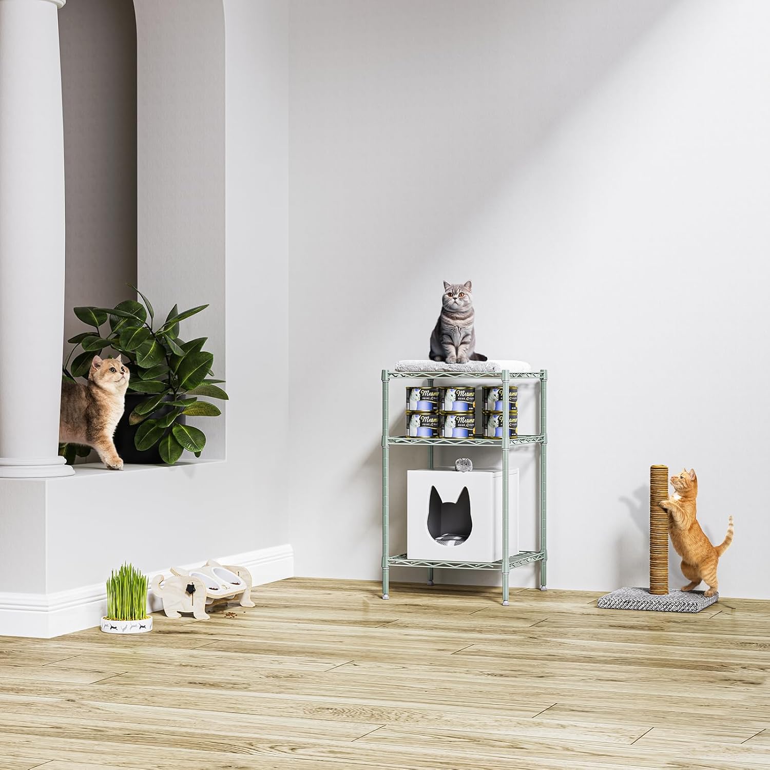 750 lbs 3-Shelf Storage Shelves Wire Shelving Unit Standing Metal Rack for Small Places Narrow Wire Rack for Bathroom, Green 13.8 D x 13.8" W x 25.5" H