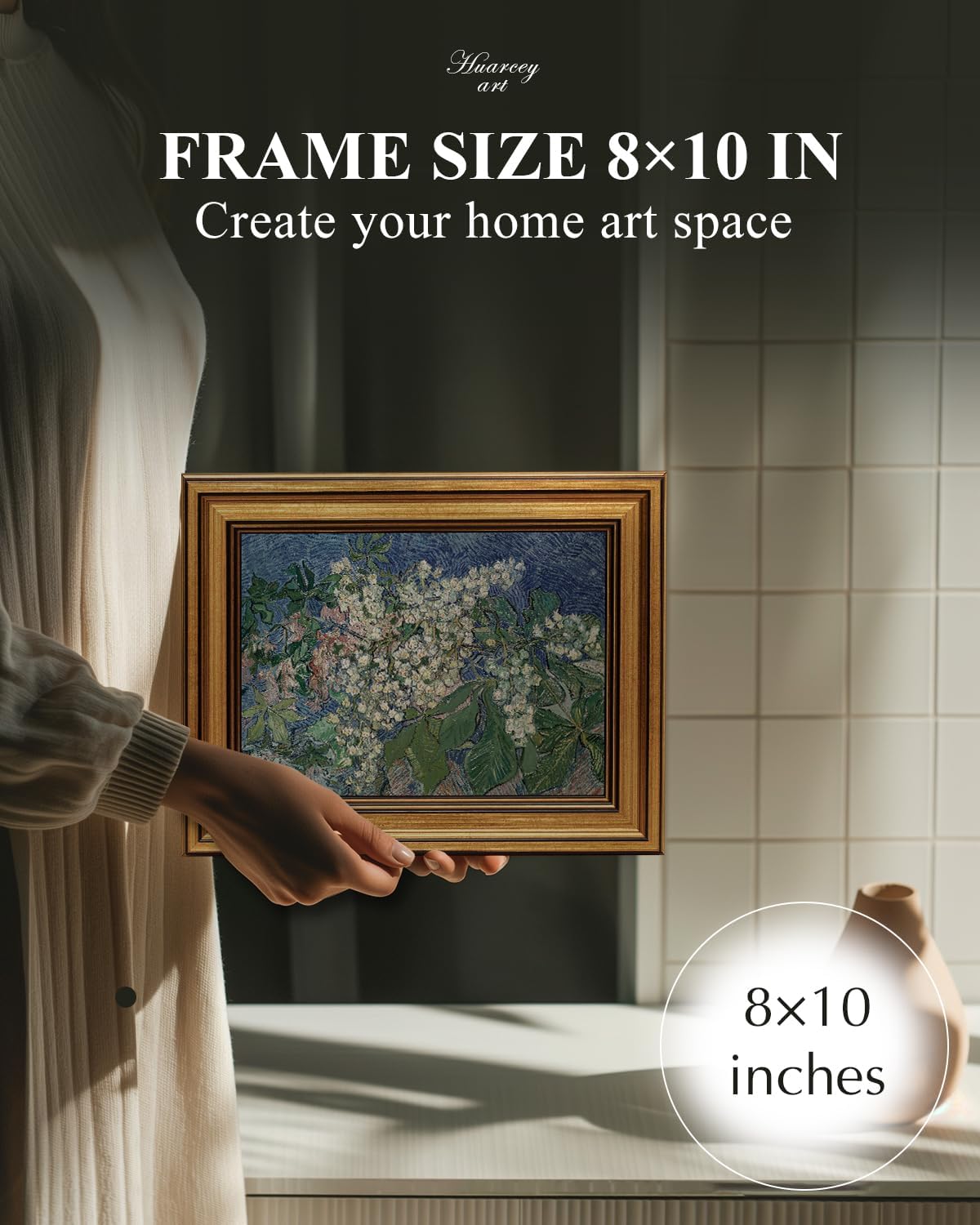 - EADY TO HANG: Measuring 8x10inch, this golden framed canvas art wall decor is designed for convenience. It comes with two hooks, making it effortless to hang. Please note that this item is handmade, so a size error of about 0.2 inches may occur
