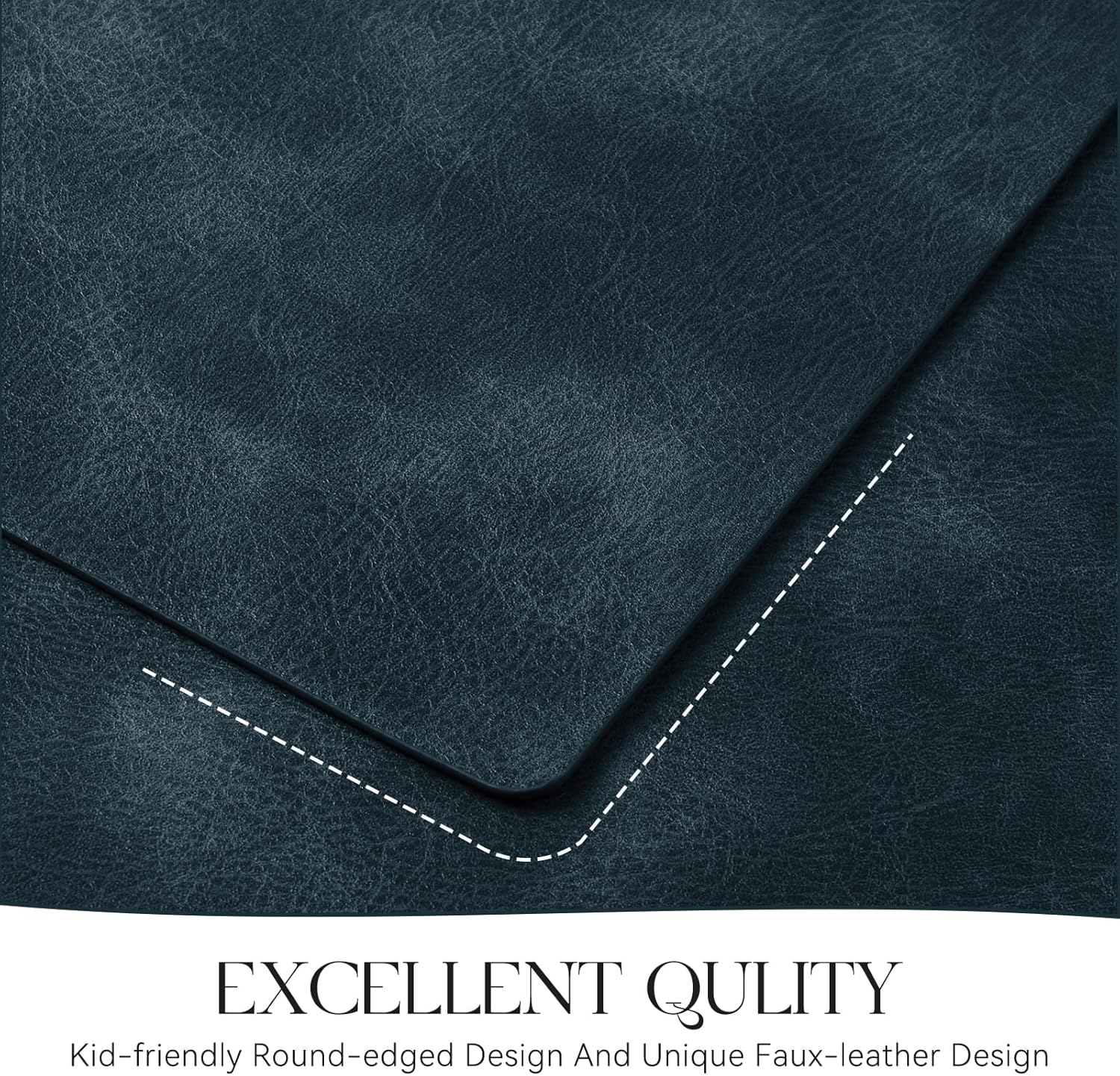 - PREMIUM QUALITY AND DURABLE: MOSAYT leather placemats are made of high quality faux leather, designed for long term use. Fine workmanship ensures superior quality and long-lasting durability of the placemats, easily protecting your table from scratches and stains.