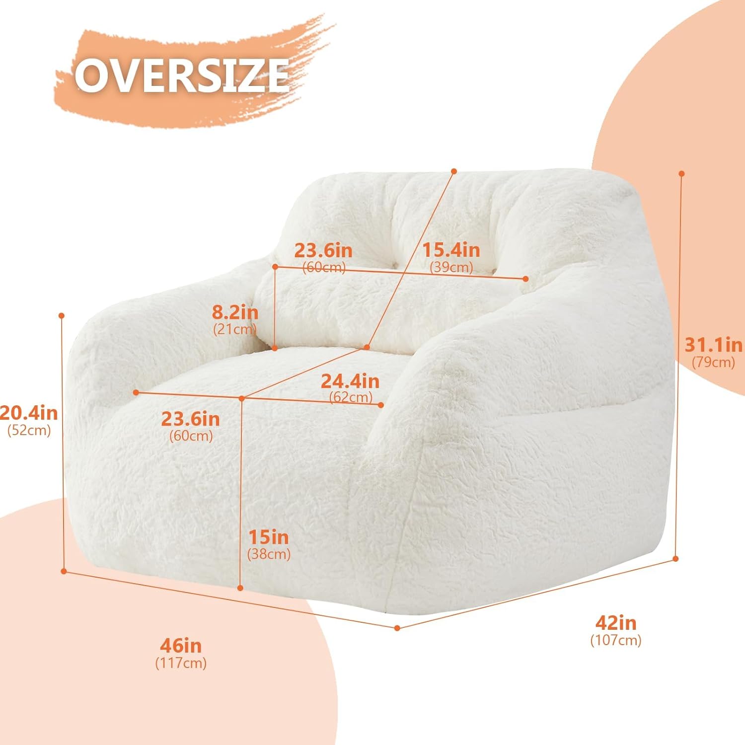 - 【MULTIPLE USAGE】: The fuzzy big bean bag sofa chair blends into a variety of home decor styles, perfect for bedroom, living room, game room, study room, office or apartment. And the cozy bean bag chairs also great for reading, playing, gaming, sleeping, rest, watch TV, etc.
