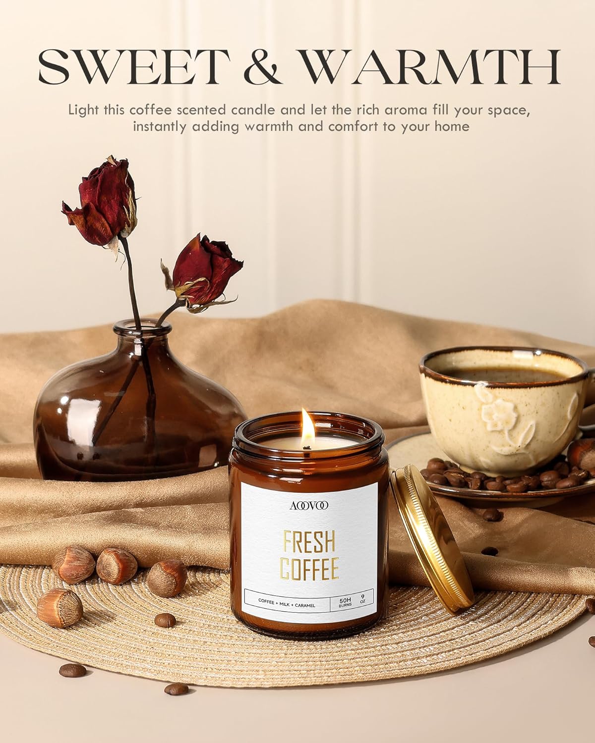AOOVOO Fresh Coffee Candles - 9 oz Scented Candles, Aromatherapy Candle, Soy Candle for Home Scented