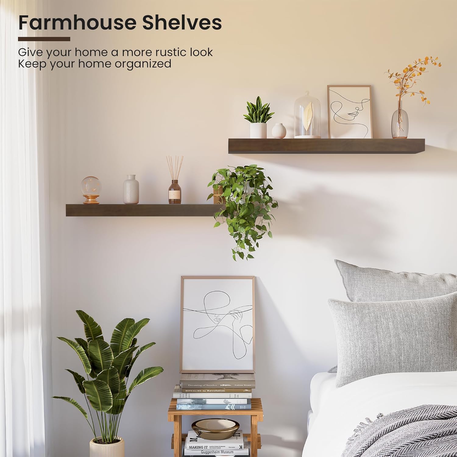 - Stylish Storage and Decor -These shelves are the perfect solution for greatful space in our pantry. it can hold pictures, candles and other small trinkets,Add these wall floating shelves to your kitchen, bedroom, bathroom, office, or living room for achieving a stylish décor upgrade that combines functionality and rustic charm.