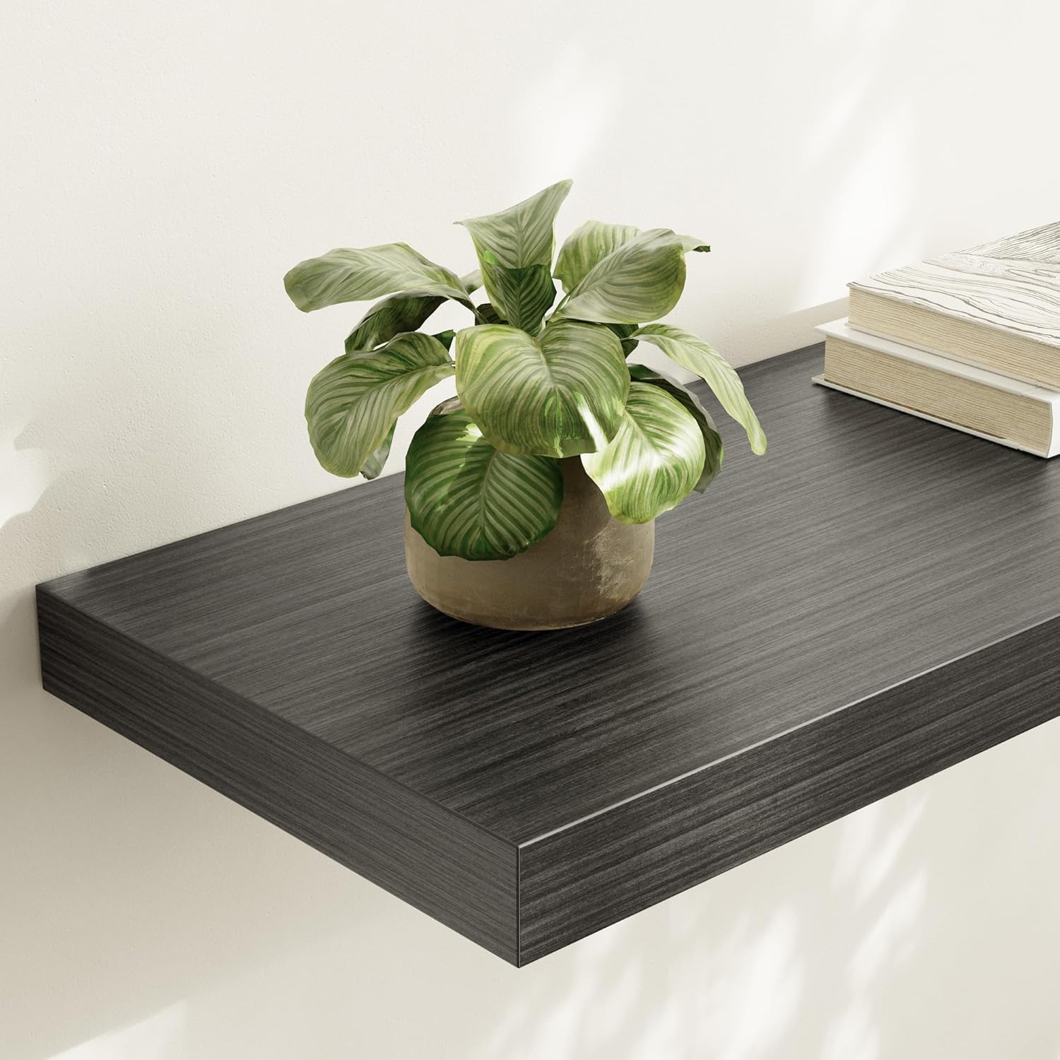 Large Floating Shelves for Wall Set of 1 Wooden Wall Shelves 24 in x 12.75 in x 2 in Room Decor Long Shelf with Invisible Wall Mount Bracket for Bedroom Kitchen Living Room Black Wood