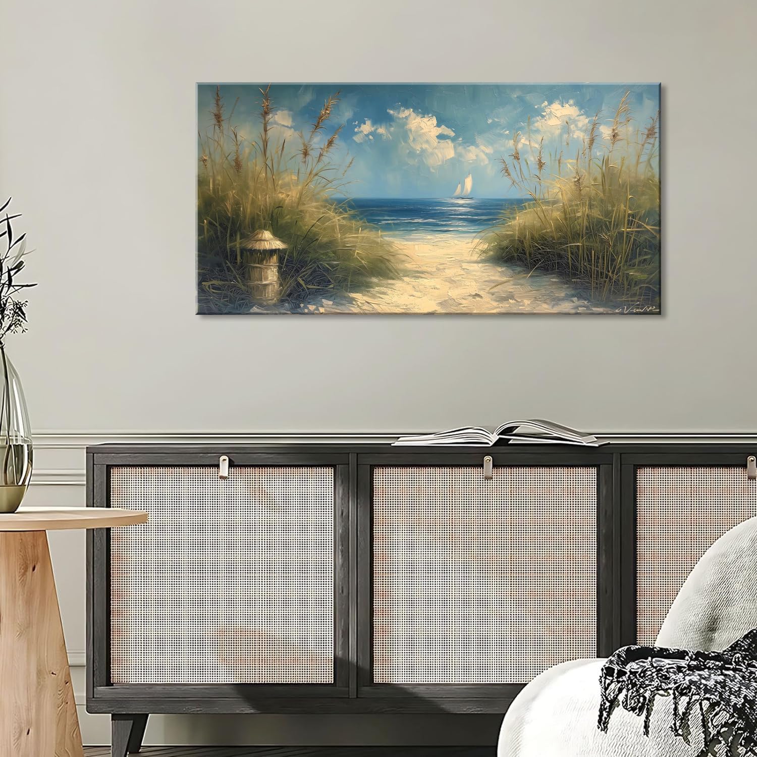 LASMOND Beautiful White Sandy Beach by Seaside Landscape Wall Art Decor Artwork for Bedroom Living Room (20x40 Inches)