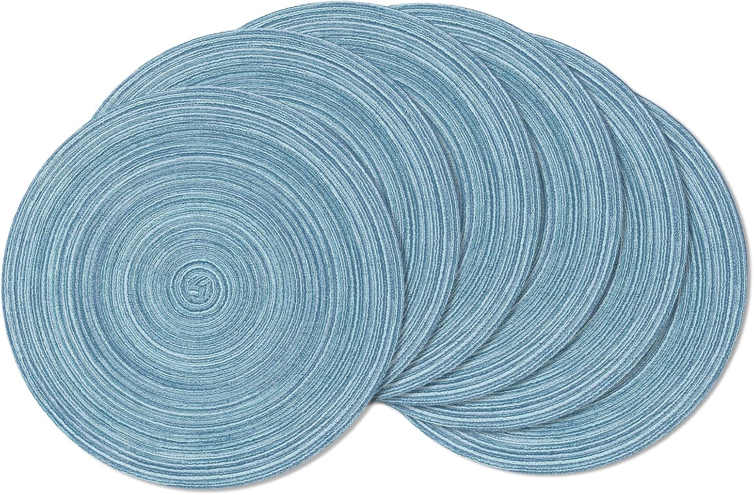 AHHFSMEI Round Braided Placemats Set of 6 Round Table Mats for Dining Tables Natural Woven Heat Resistant Place mats 15 Inch (Sky Blue)