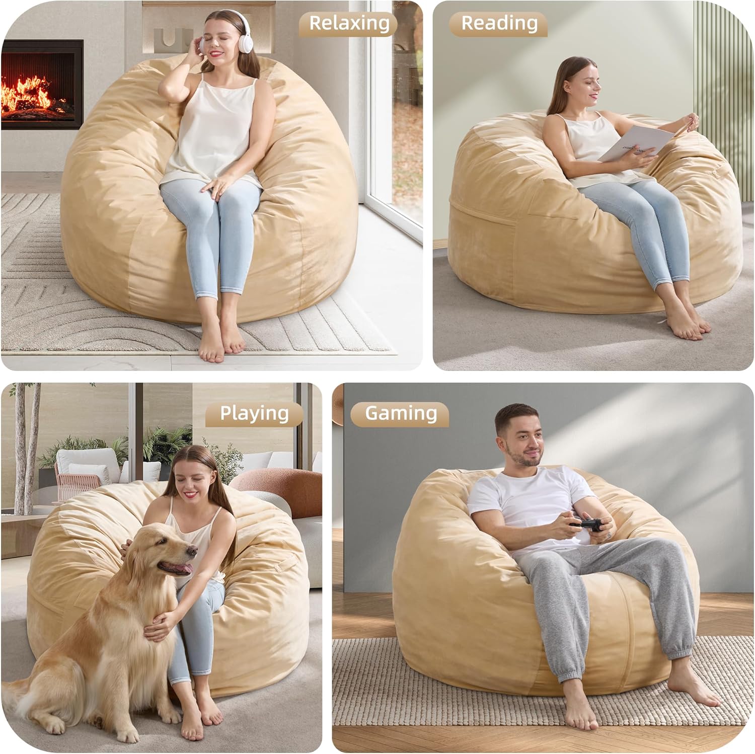 Hobestluk 4FT Bean Bag Chair Giant Bean Bag Chairs for Adults Large Bean Chairs with Removable Cover, Beanbag Chair with Filler, Adult Bean Bag Chairs for Living Room, Bedroom